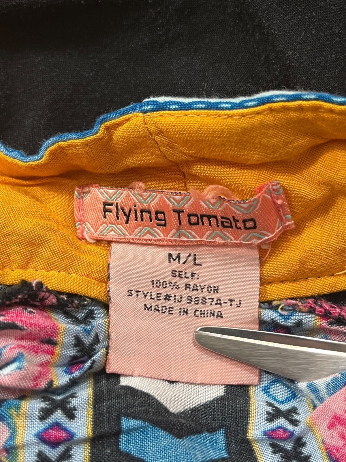 Flying Tomato Kimono Womens M/L. Black Floral Asymmetrical Boho Festival Gypsy