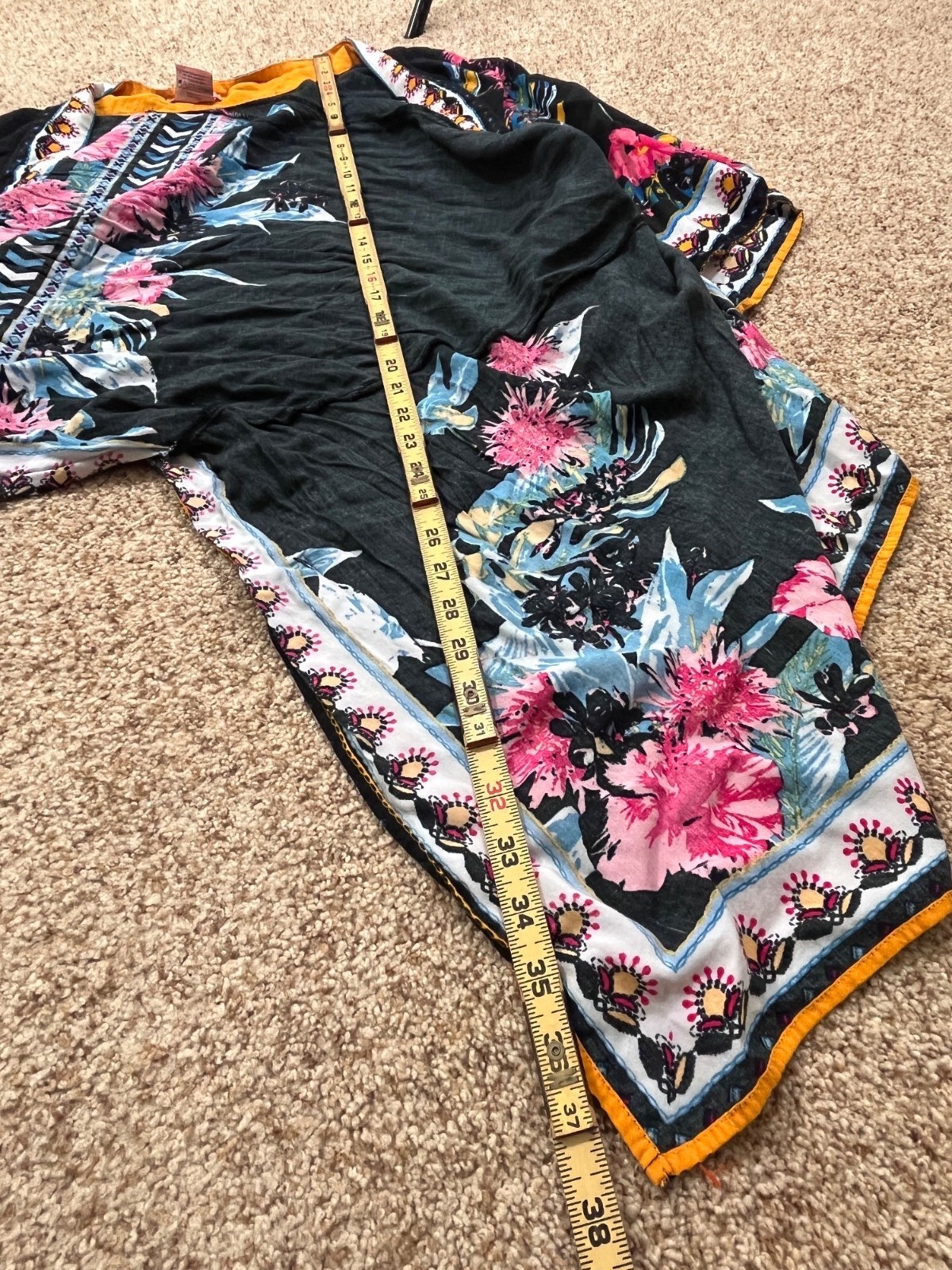 как выглядит Flying Tomato Kimono Womens M/L. Black Floral Asymmetrical Boho Festival Gypsy фото