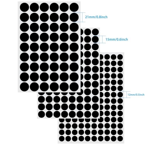 3 Sheets 290 Pcs Screw Hole Cover Stickers, 12 mm/15 mm/21 mm Screw Black