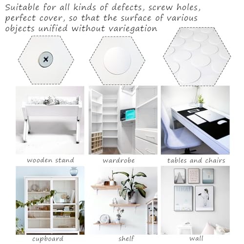 580 Pcs White PVC Screw Hole Stickers, Covers for 580 Pcs -12mm 15mm 21mm White