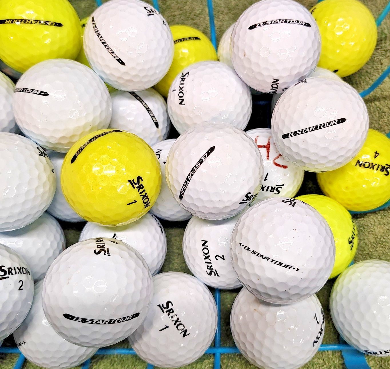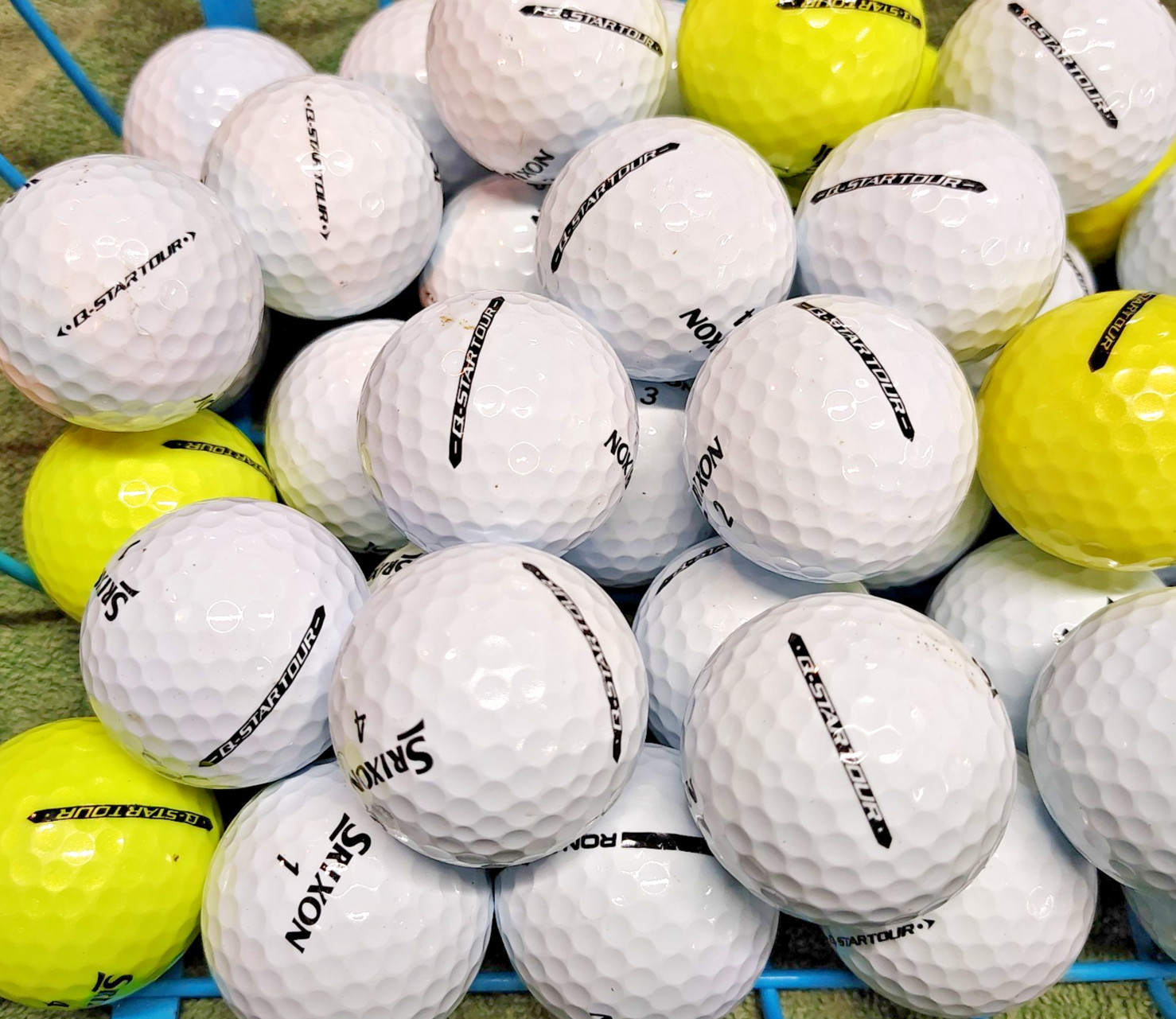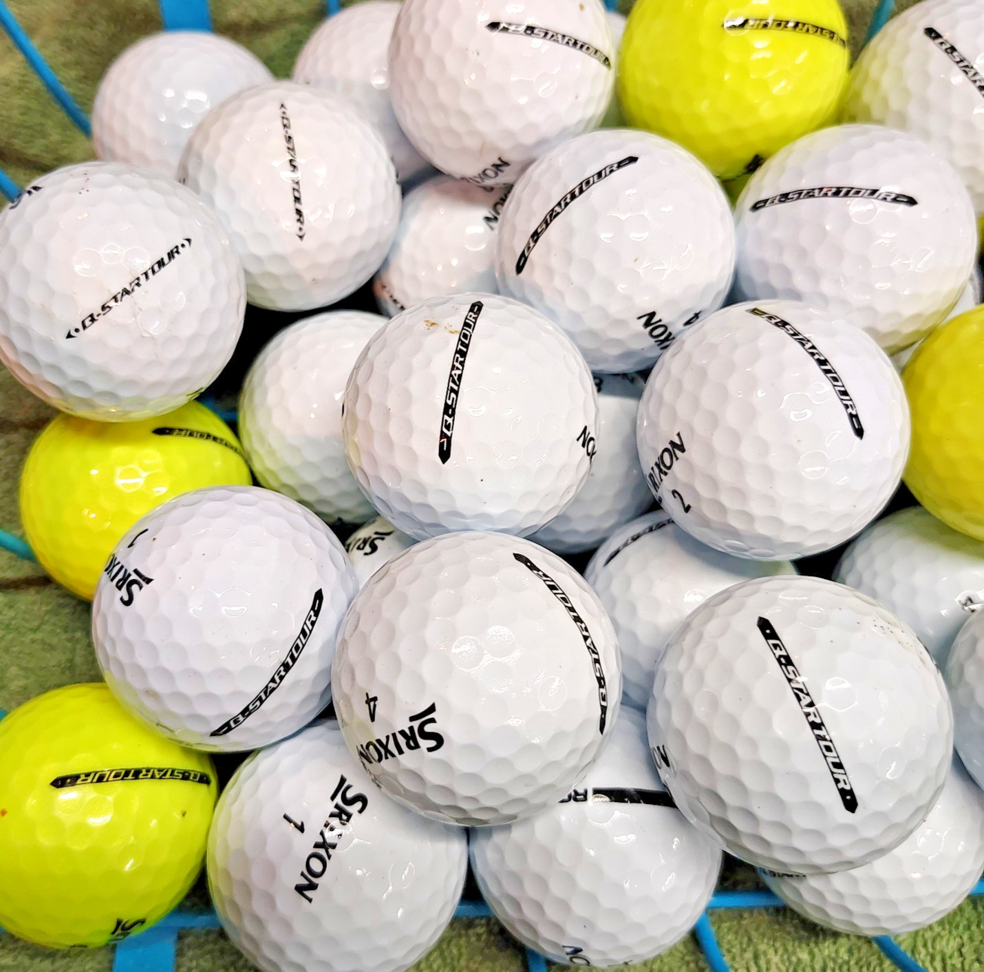 как выглядит 50 Srixon Q Star Tour 5A Yellow/White Used Golf Balls 4 dozen 2 extra фото