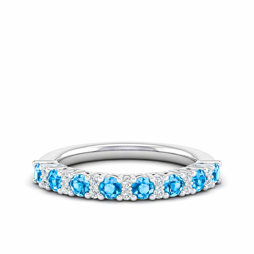 Sterling Silver 925 Swiss Blue Topaz Round 3.00mm Half Eternity Band Ring