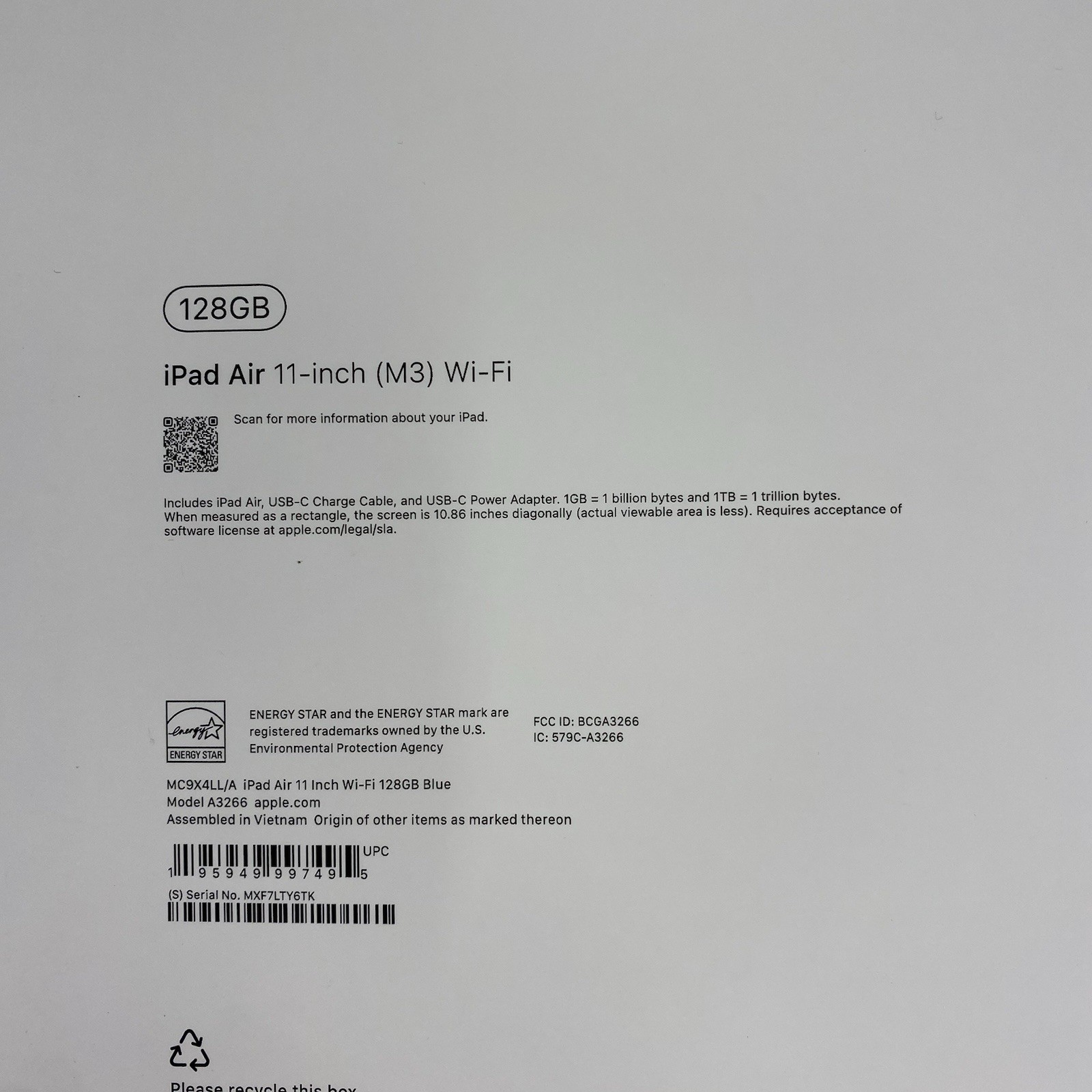 как выглядит Apple iPad Air MC9X4LL/A 11-Inch M3 WI-FI 128GB Blue, EMPTY BOX ONLY фото