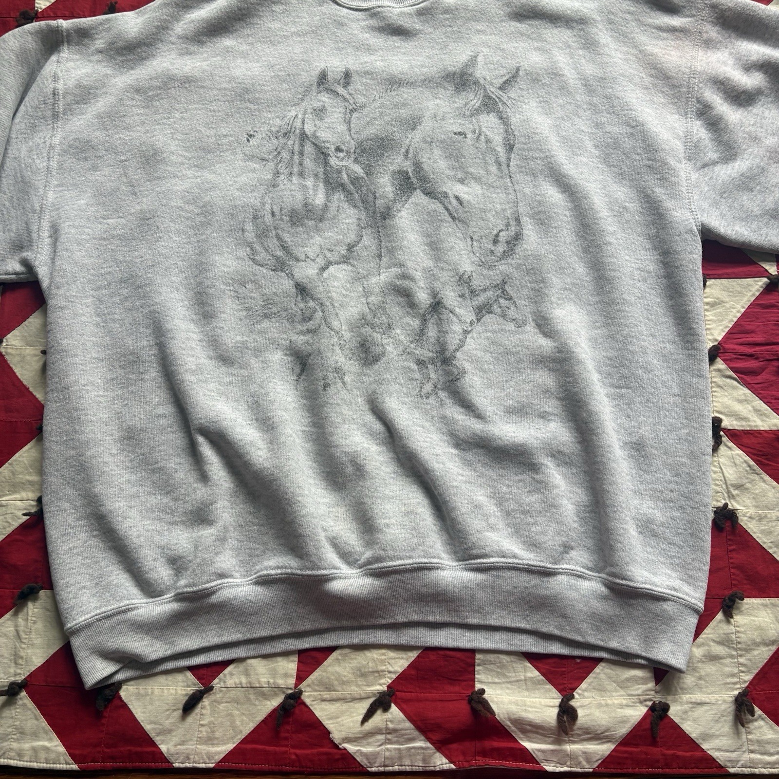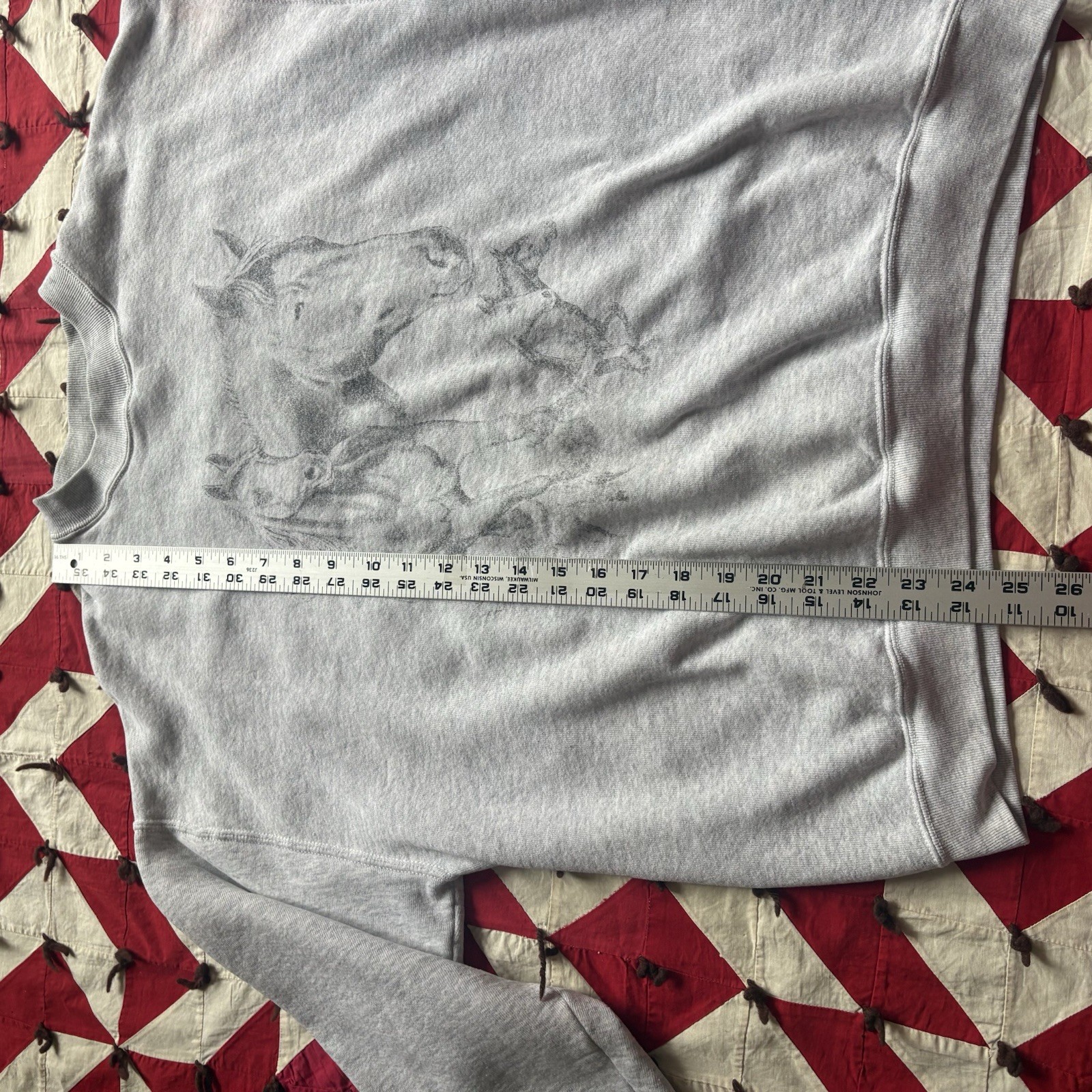 Vintage Gray Horse Graphic Crewneck Sweatshirt Mens As Is Worn Flaws 90s