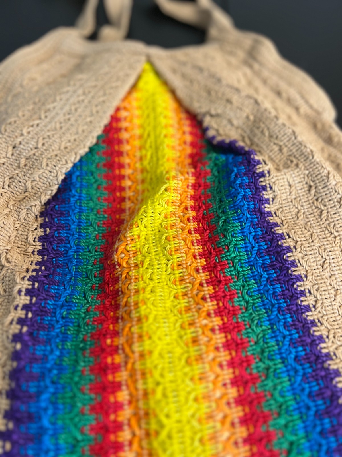 Vintage Women's Boho HIPPIE Tote PURSE HANDBAG Rainbow Woven Fabric Pride Large