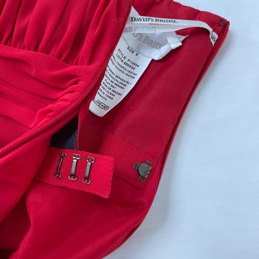 как выглядит Davids Bridal Dress Womens 8 Ruby Red Chiffon Bridesmaid Knee Len Style F13954 фото