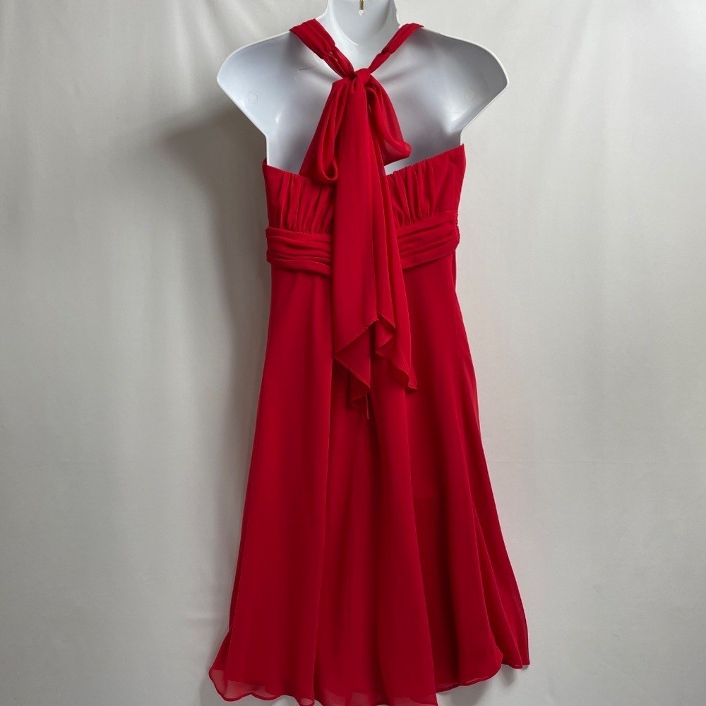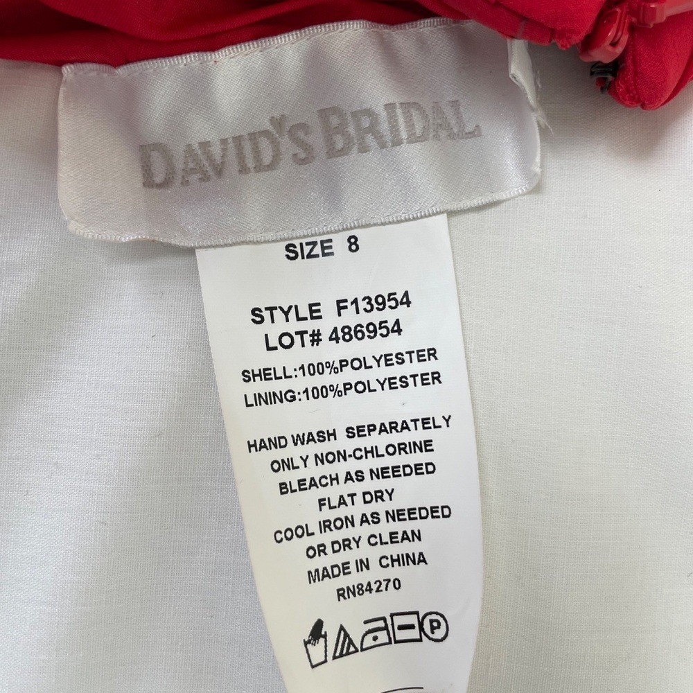 Davids Bridal Dress Womens 8 Ruby Red Chiffon Bridesmaid Knee Len Style F13954