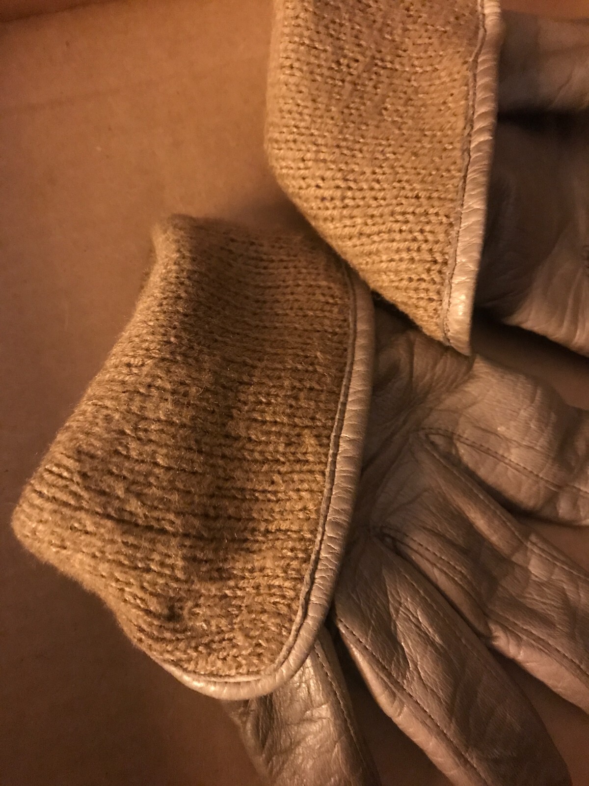 как выглядит Vintage 1960s Genuine Leather Womens Gloves Wool Lined Color Greige Size S/M фото