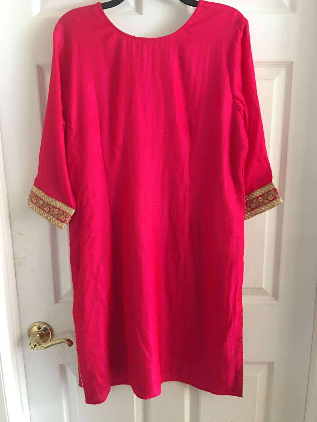 как выглядит Womens Beautiful Pink Kurti with Gold Embroidery w/ Three-Quarter Sleeves фото