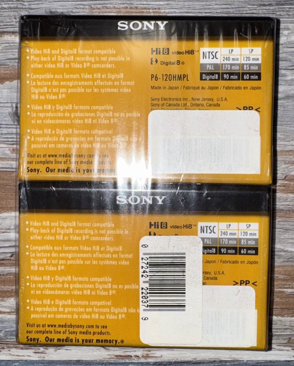6 - Sony Hi8 60 Min Digital8 120 Min Hi8 P6-120HMPL Camcorder Cassettes