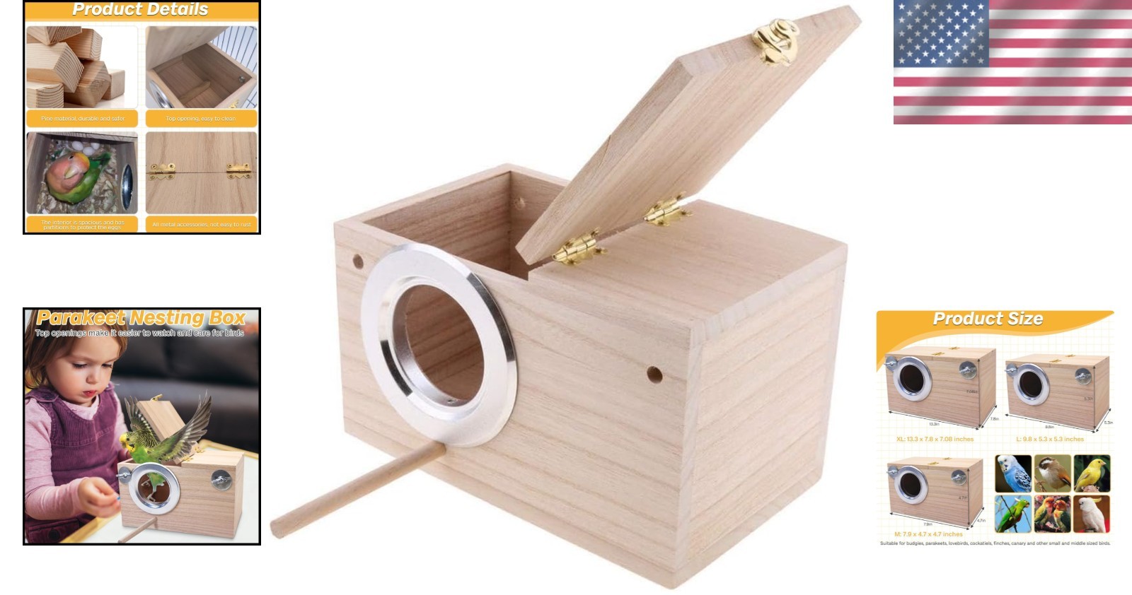 • Deluxe Breeding Nest Box for Small Birds - Easy Clean Design, M Size 7.9x4.7