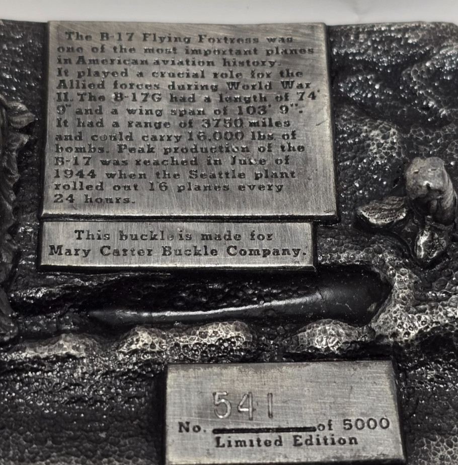 Vintage Boeing Pewter Belt Buckle B-17 Bomber Siskiyou 1985 Serial 541