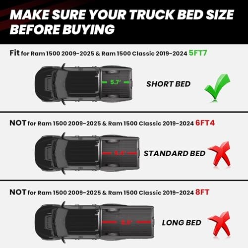5.7FT Truck Bed 3 For RAM 1500 2009-2026 Bed Mat 5'7 Bed with Rambox