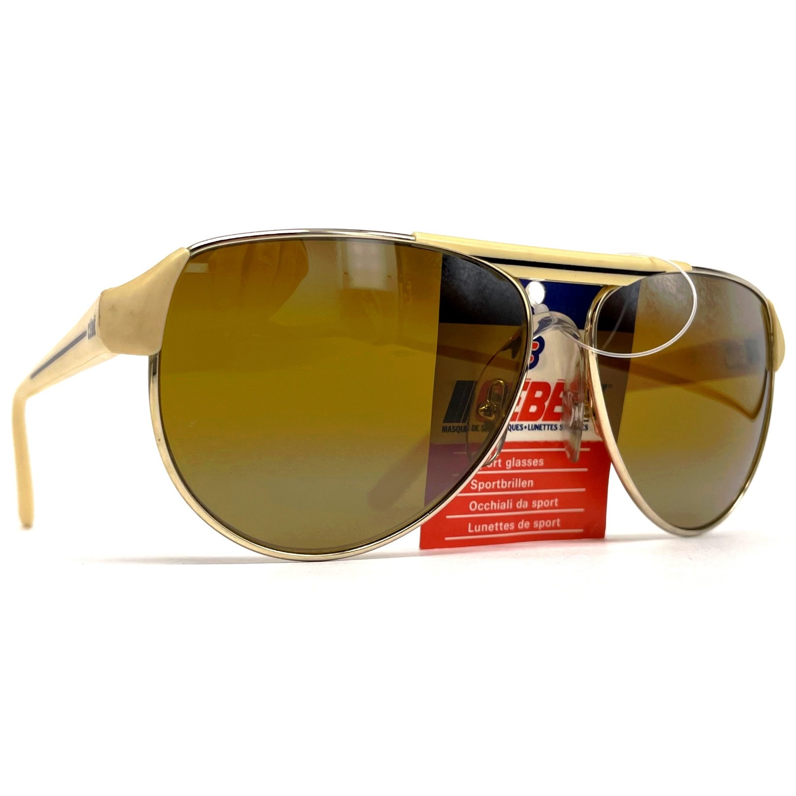 Vintage CEBE 519 Sunglasses - France 1990's - Large - Beige / Gold - RARE