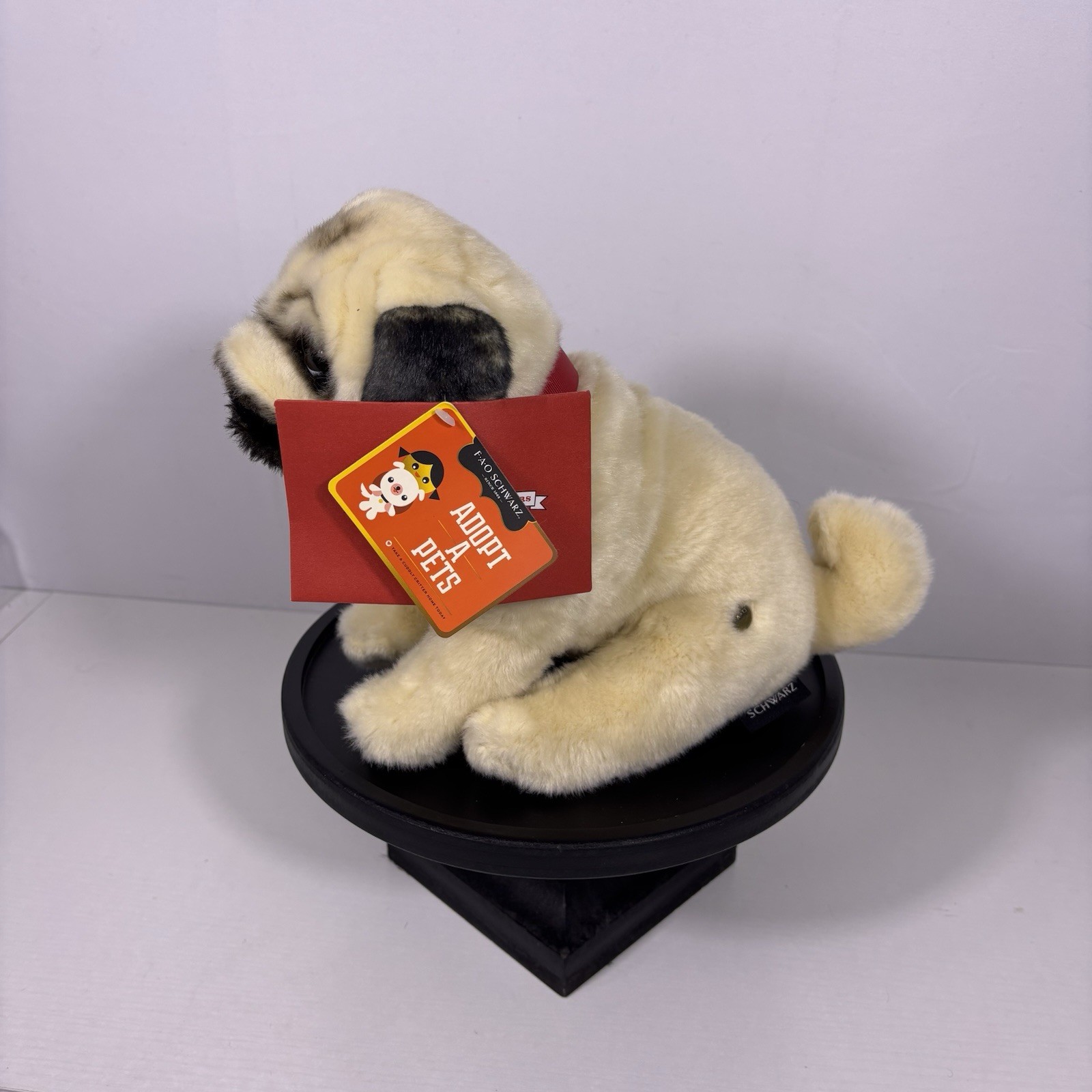 FAO Schwarz Pug Puppy Dog Plush Sitting with Red Collar Adoption Papers