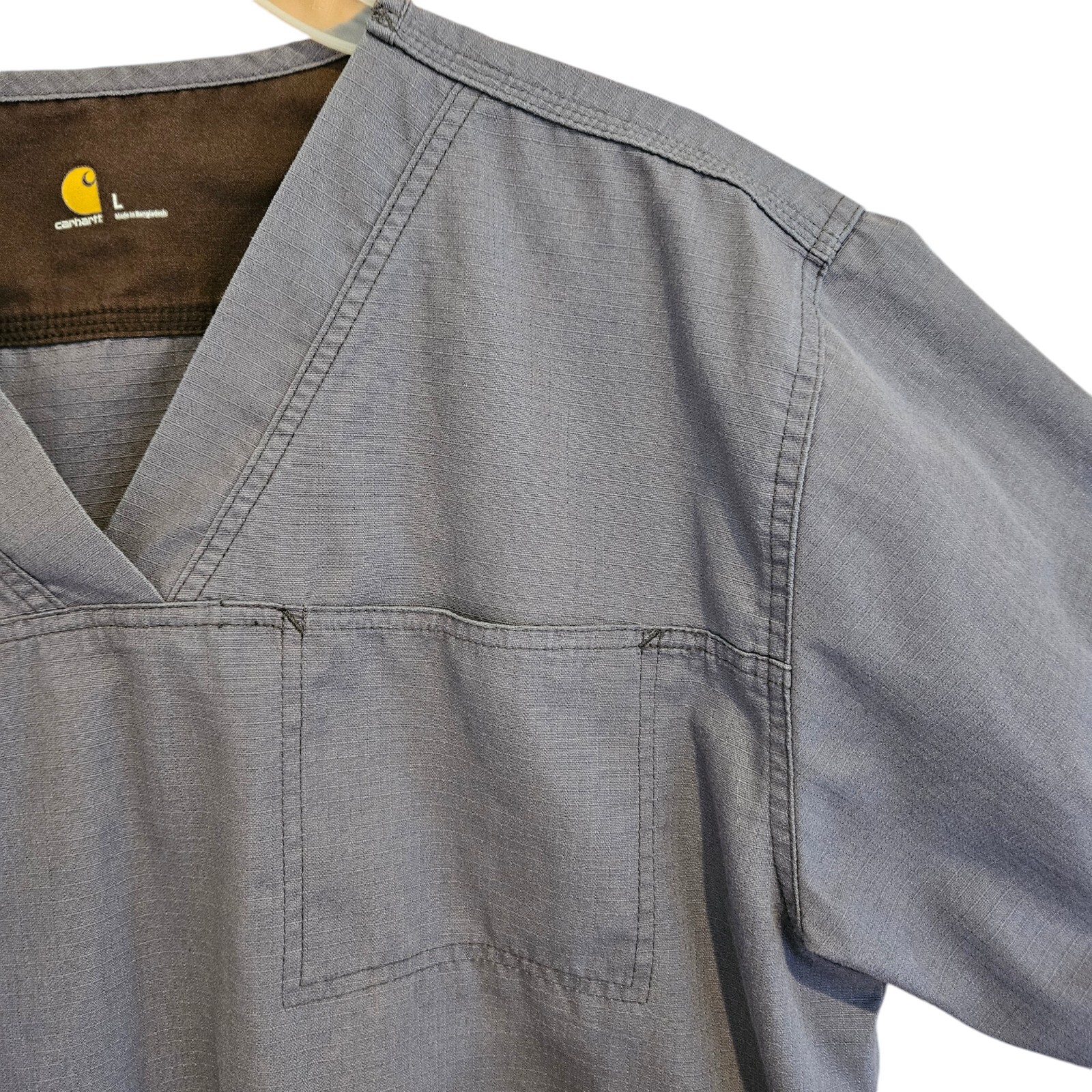 Carhartt Mens Scrub Top Shirt Large Rip Stop C15208 Bi-swing 4 Pocket V Neck