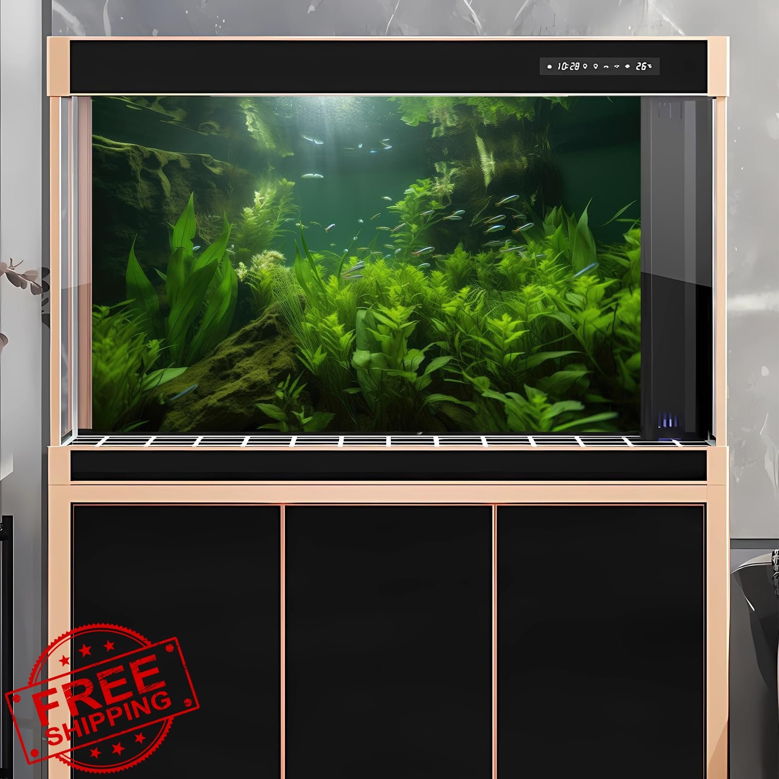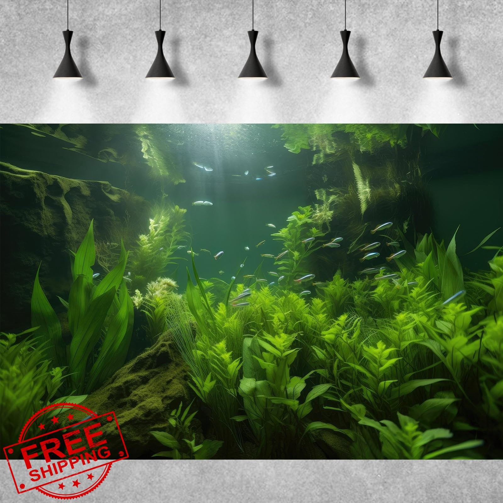 Aquarium Background Green Seagrass Sunbeams Fish Tank 30x18in