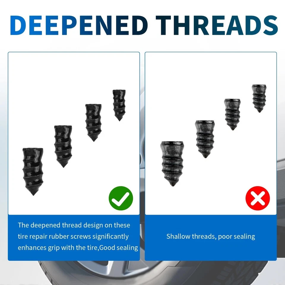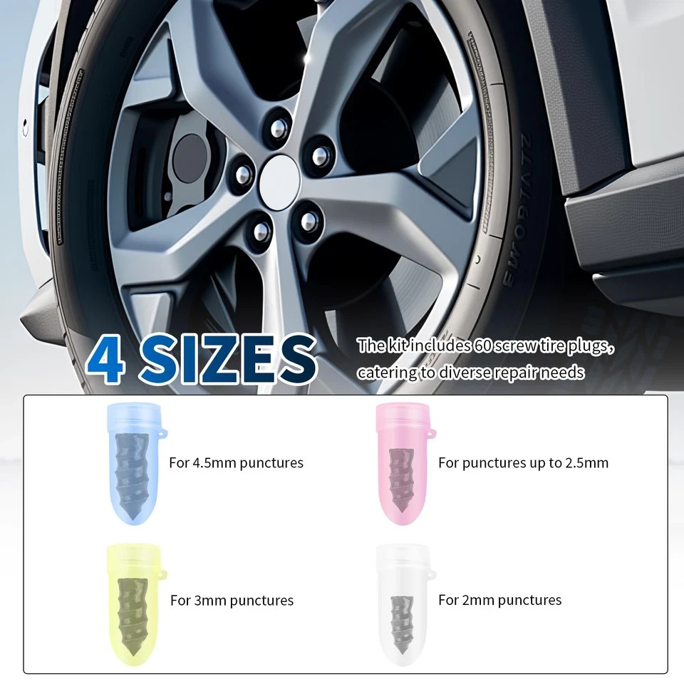 как выглядит 4 Size 60PCS Heavy Duty Tire Plugs Kit with Screwdriver,Deep Threads Screw in... фото