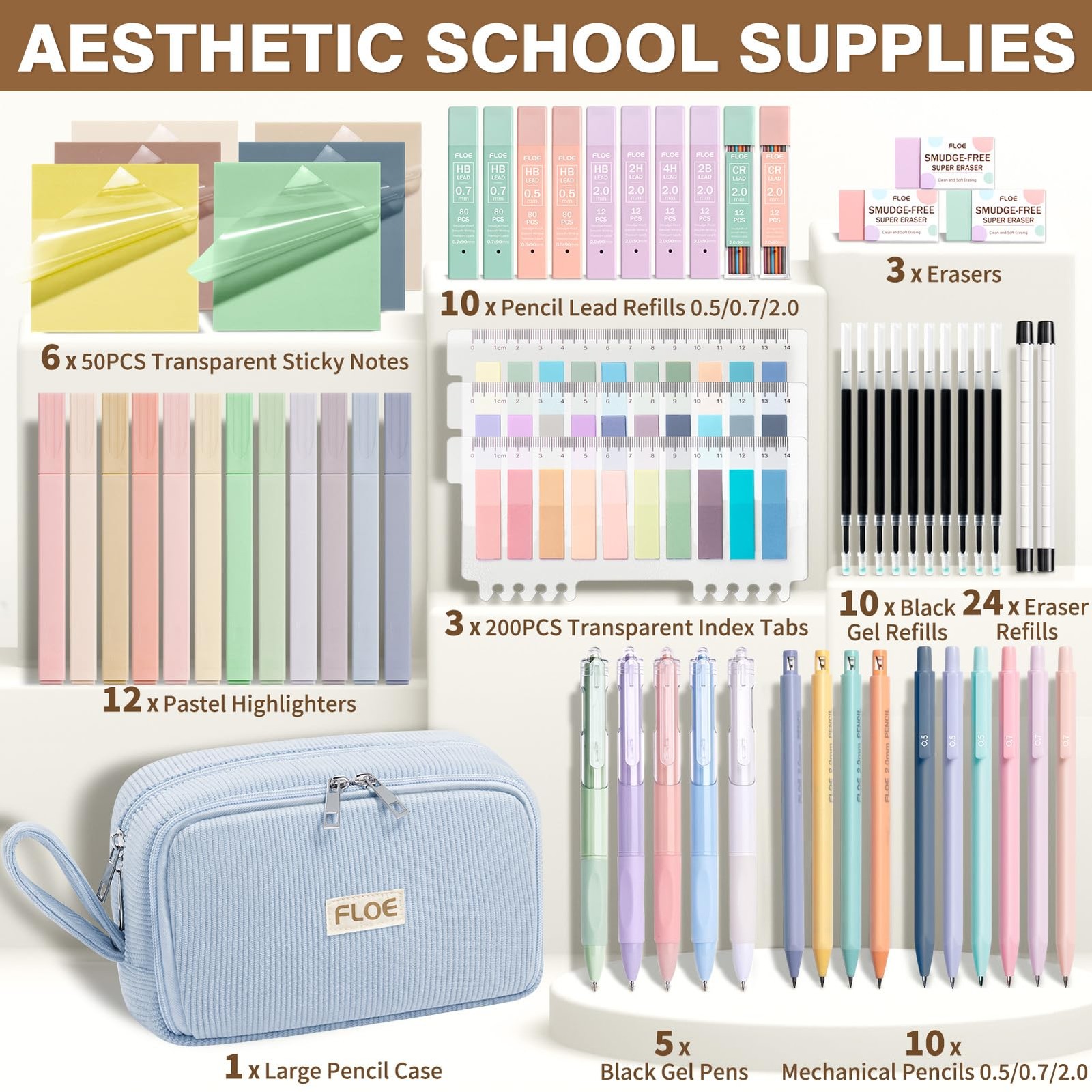 62PCS Aesthetic School Supplies, Cute Back to School Supplies College Essenti...