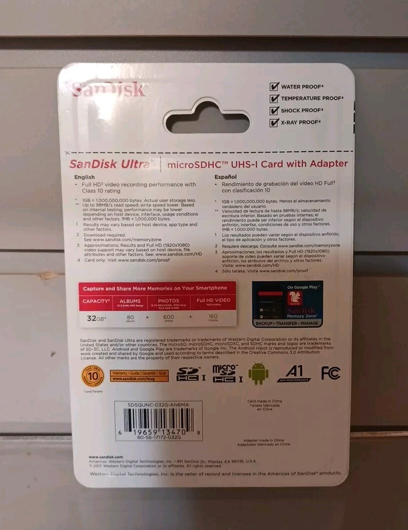 SanDisk ULTRA MicroSDHC UHS-1 CARD 32 GB UP TO 98 MB/s 653X SPEED