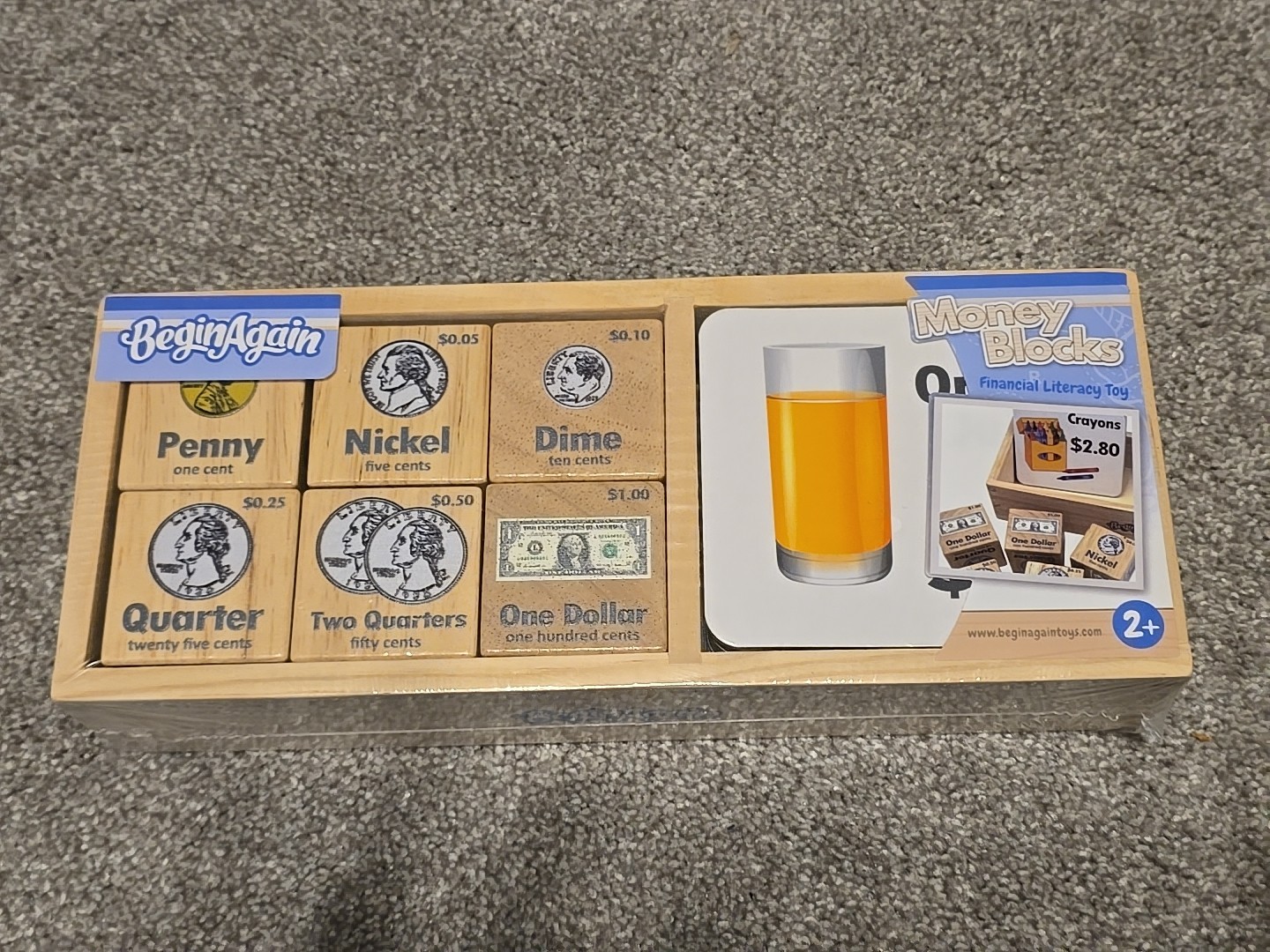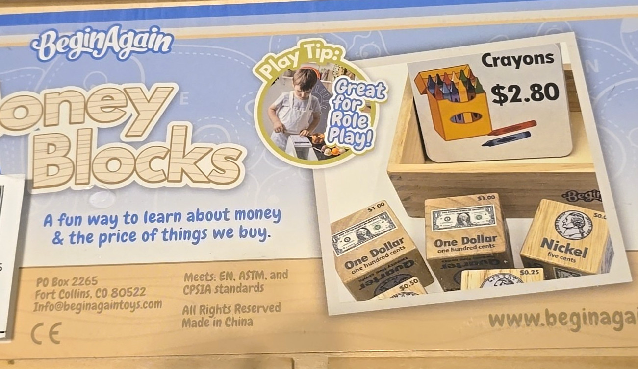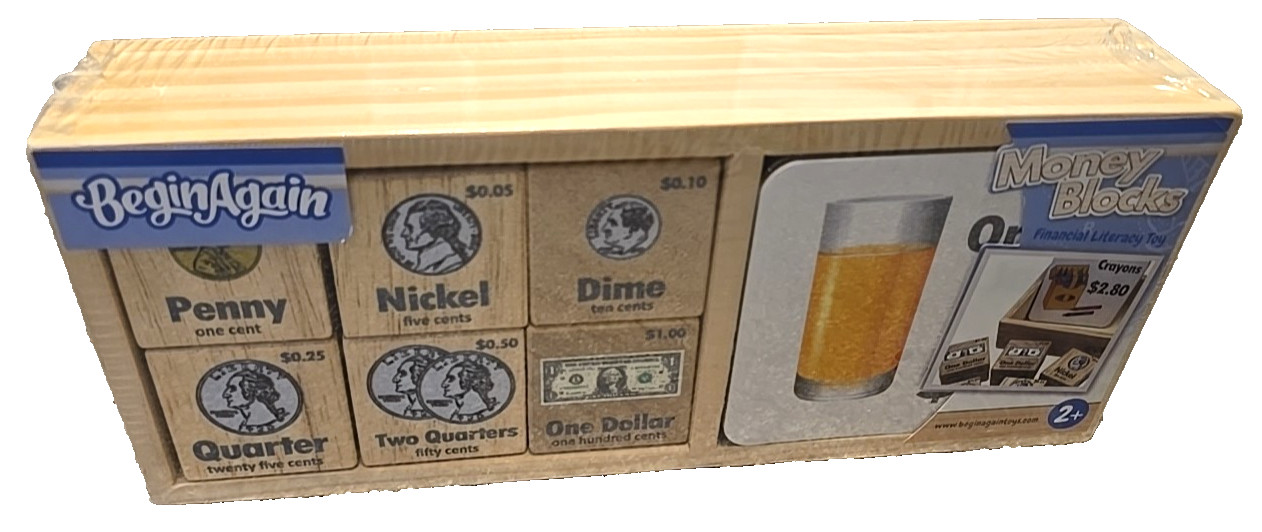 Money Blocks Financial Literacy Toy Role Play Wooden by BeginAgain NEW Unopened