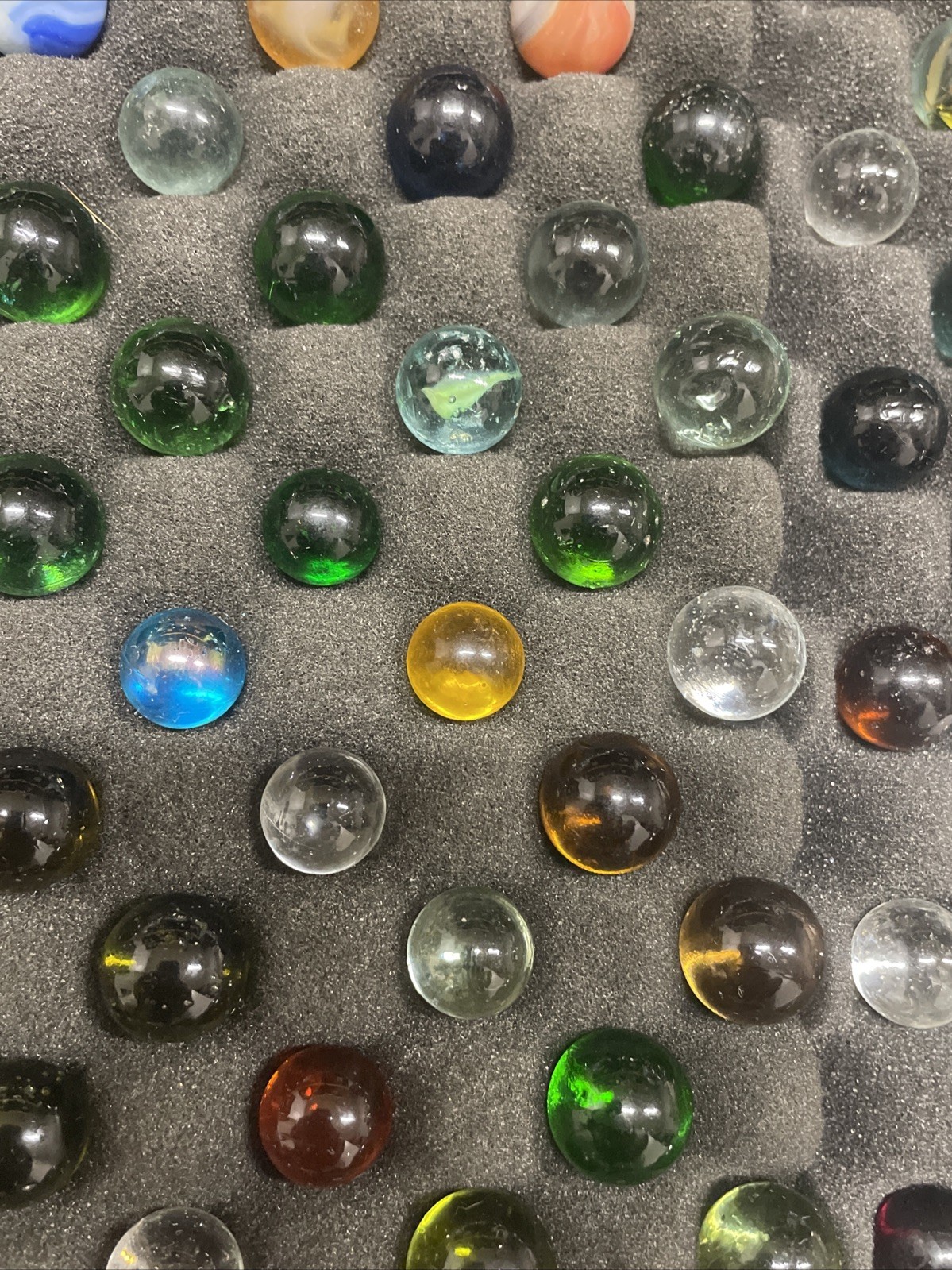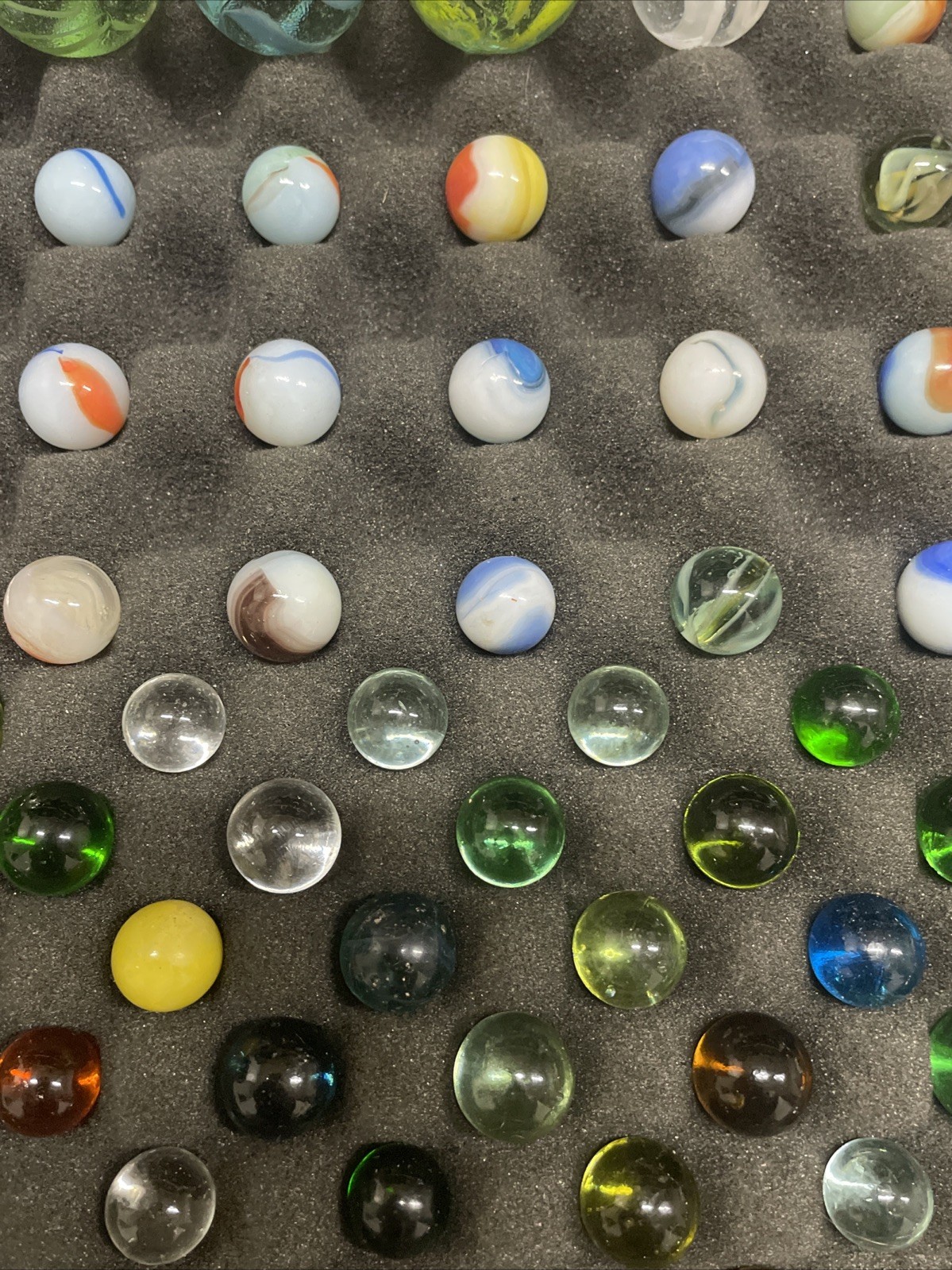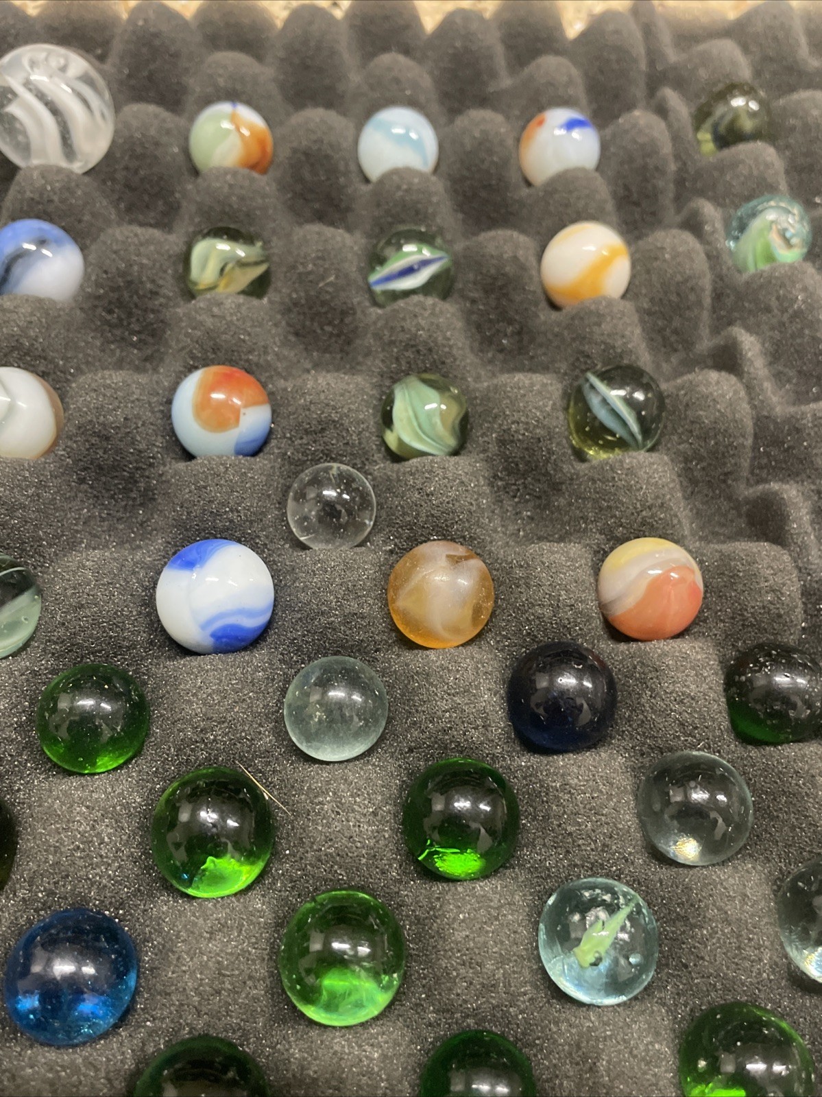 как выглядит Large Lot of Vintage Marbles Various Sizes Colors, Vein, Green Glass, Cat Eye фото