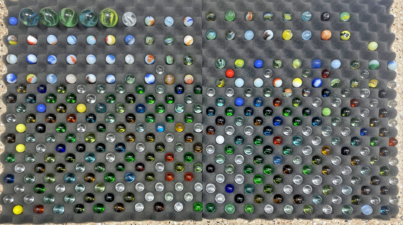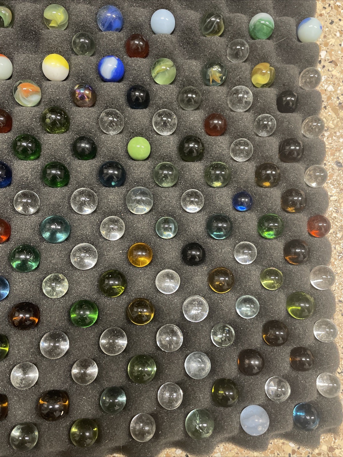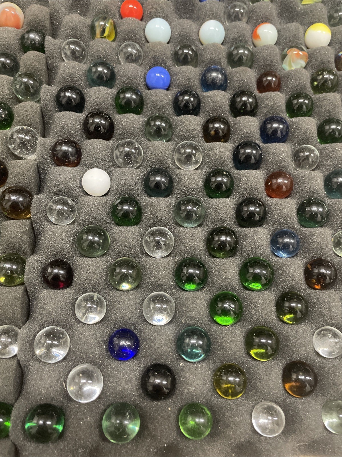 как выглядит Large Lot of Vintage Marbles Various Sizes Colors, Vein, Green Glass, Cat Eye фото