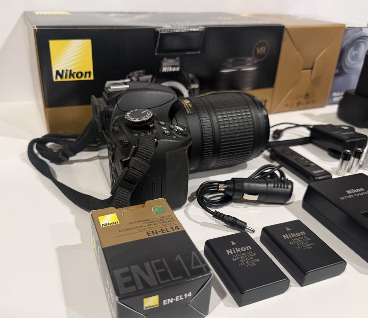 Nikon D3100 Digital SLR Camera w/ 18-140mm AF-S DX Lens Battery Grip Flash