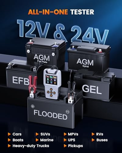 Car Battery Tester 24V 12V with Color Display, 100-2000CCA Cranking BA101 Pro