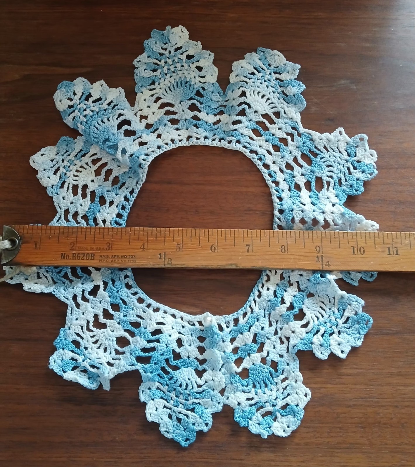 Vintage Crocheted Cotton Lace Detachable Collar. Blue . Easter . GRANNY CORE