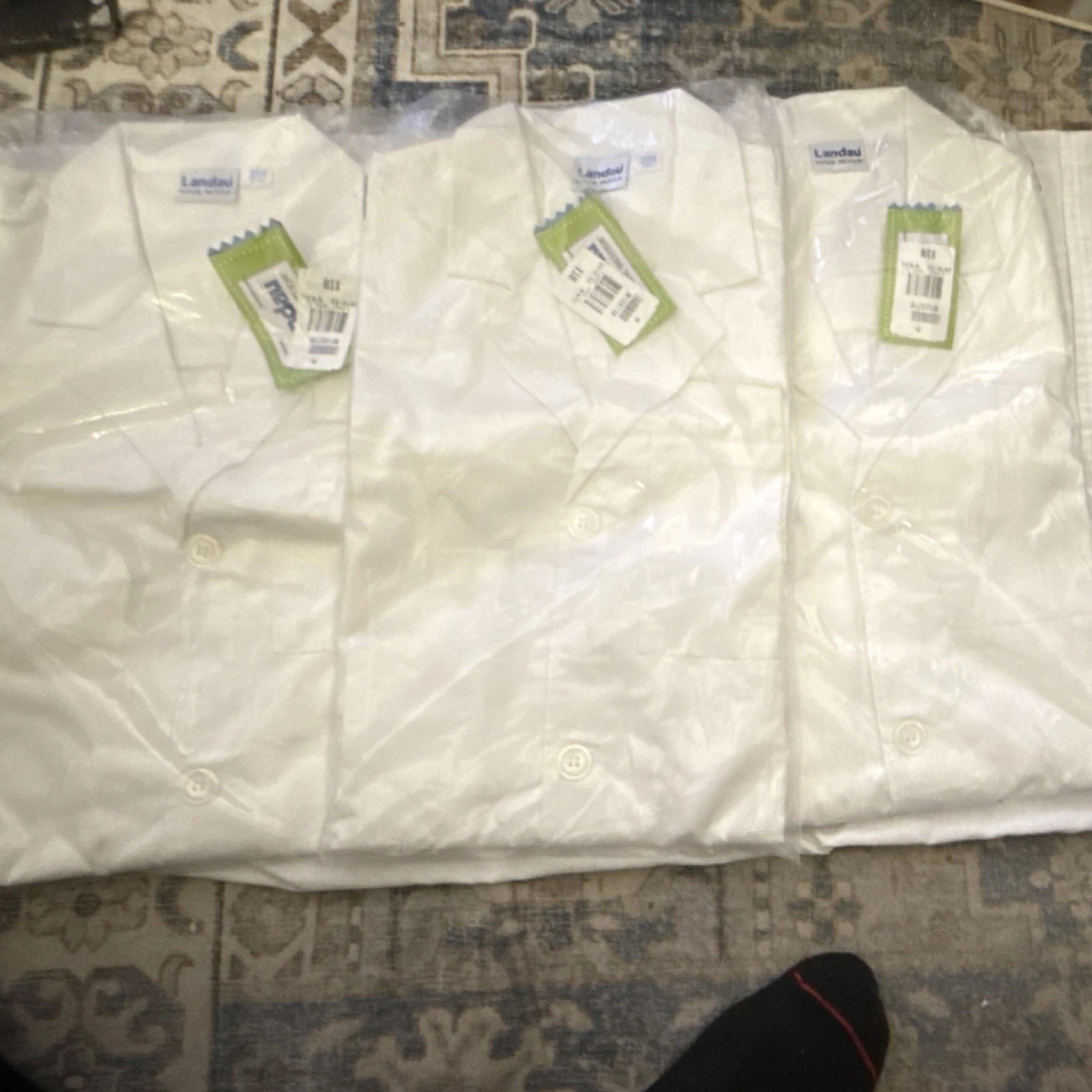 как выглядит Landau Women White Scrub Top XS WSX Solid Pattern Medical Industry Uniform 3 Pck фото