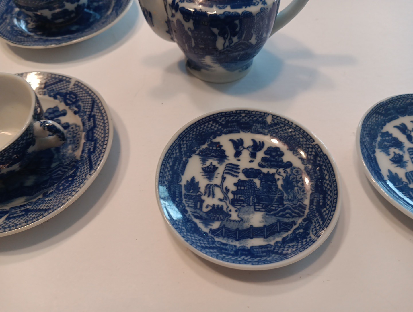 как выглядит Vintage 11 Piece, Miniature Blue Willow Tea Set, Childs, Dolls, No Chips, Japan фото