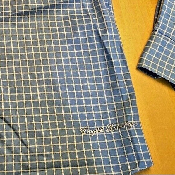 как выглядит ENGLISH LAUNDRY MENS DRESS SHIRT SZ 16 34/35 FLIP CUFF BLUE PLAID LONG SLEEVE фото