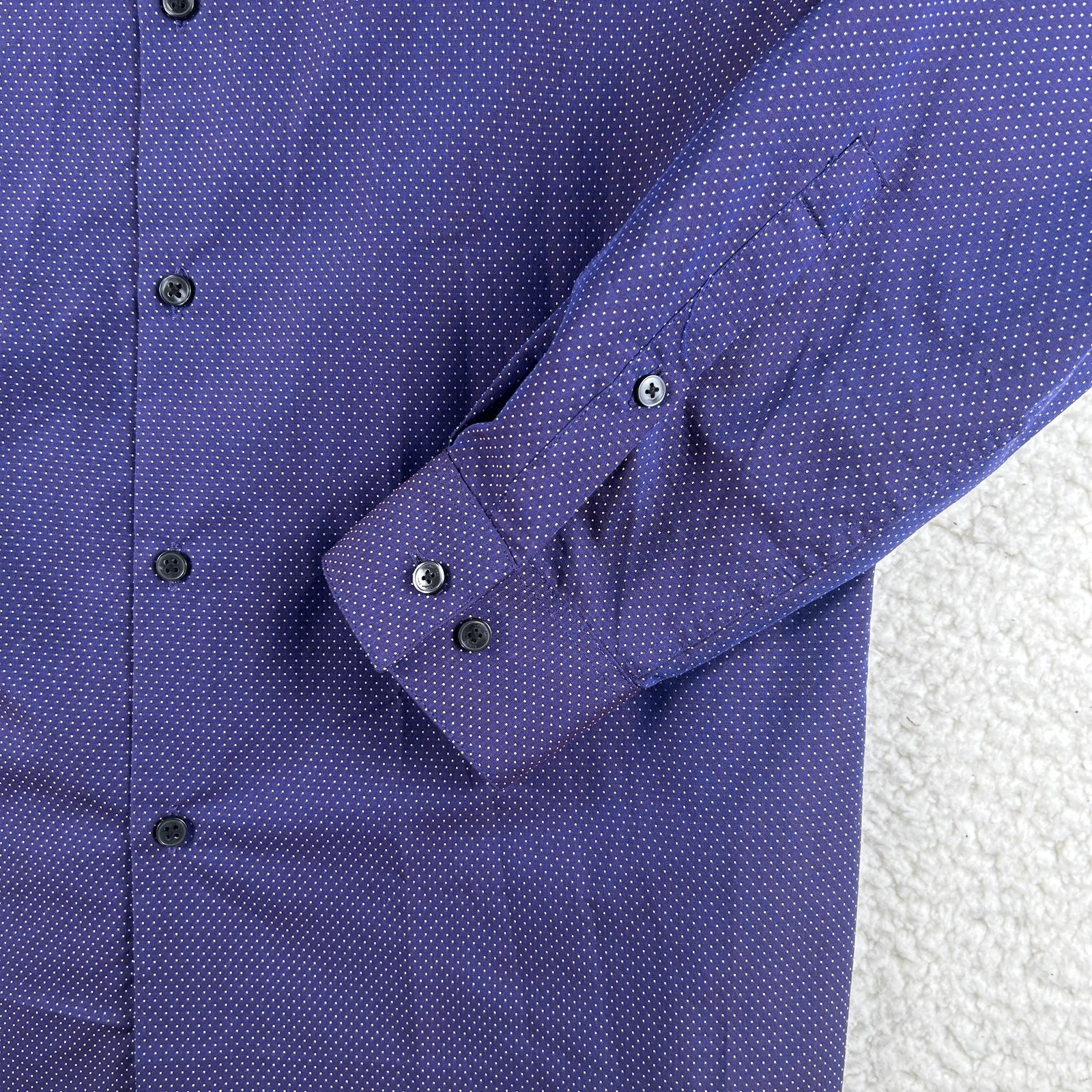Calvin Klein Dress Shirt Mens 15.5 32/33 Purple Slim Fit Dot Print Long Sleeve