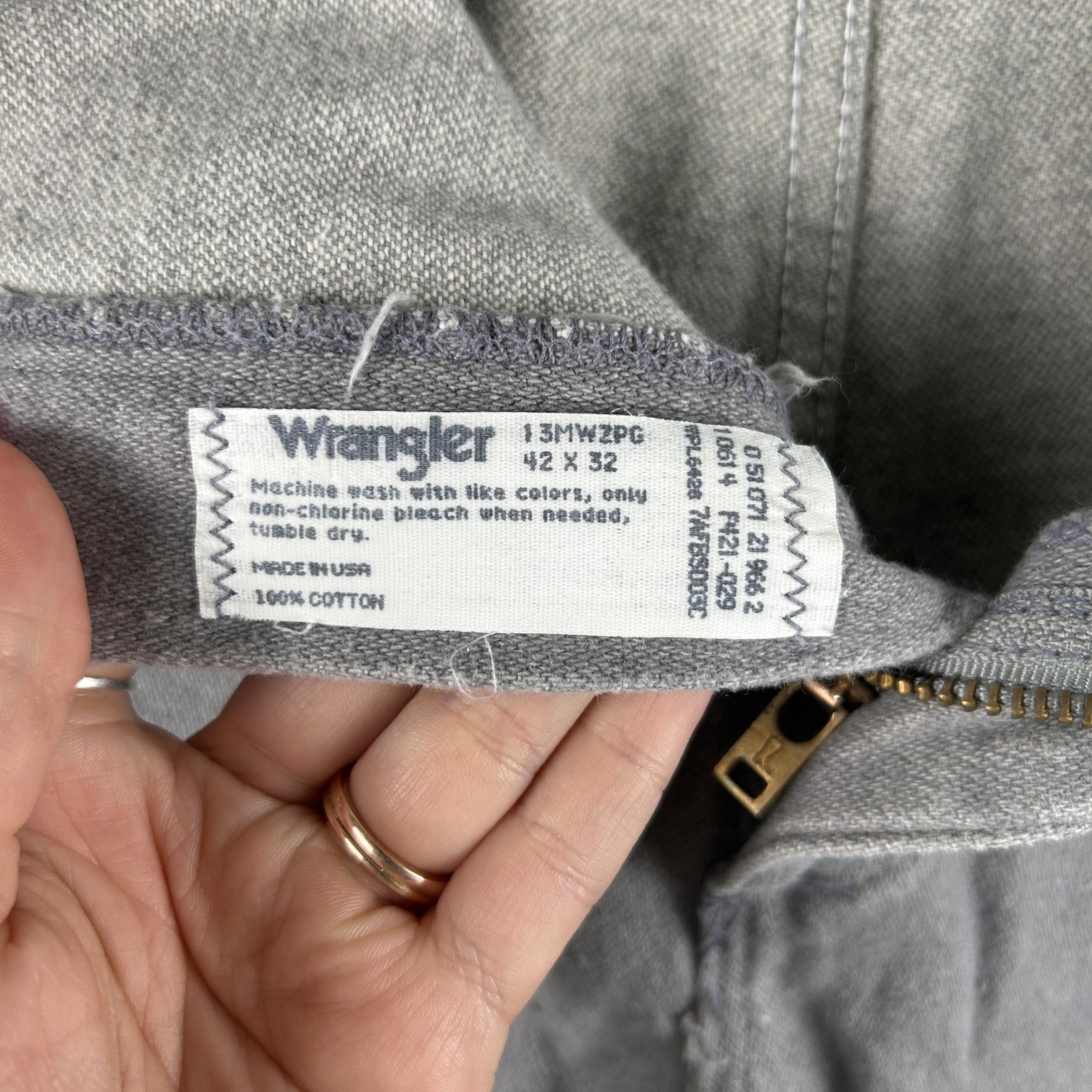 Vintage Wrangler Jeans Mens 42x32 Gray Wash Straight Denim Zip 80s 13MWZPC USA