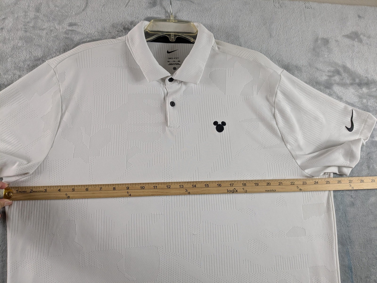 Nike Polo Shirt Mens 2XL White Mickey Mouse Disney Dri-FIT Tour Golf READ
