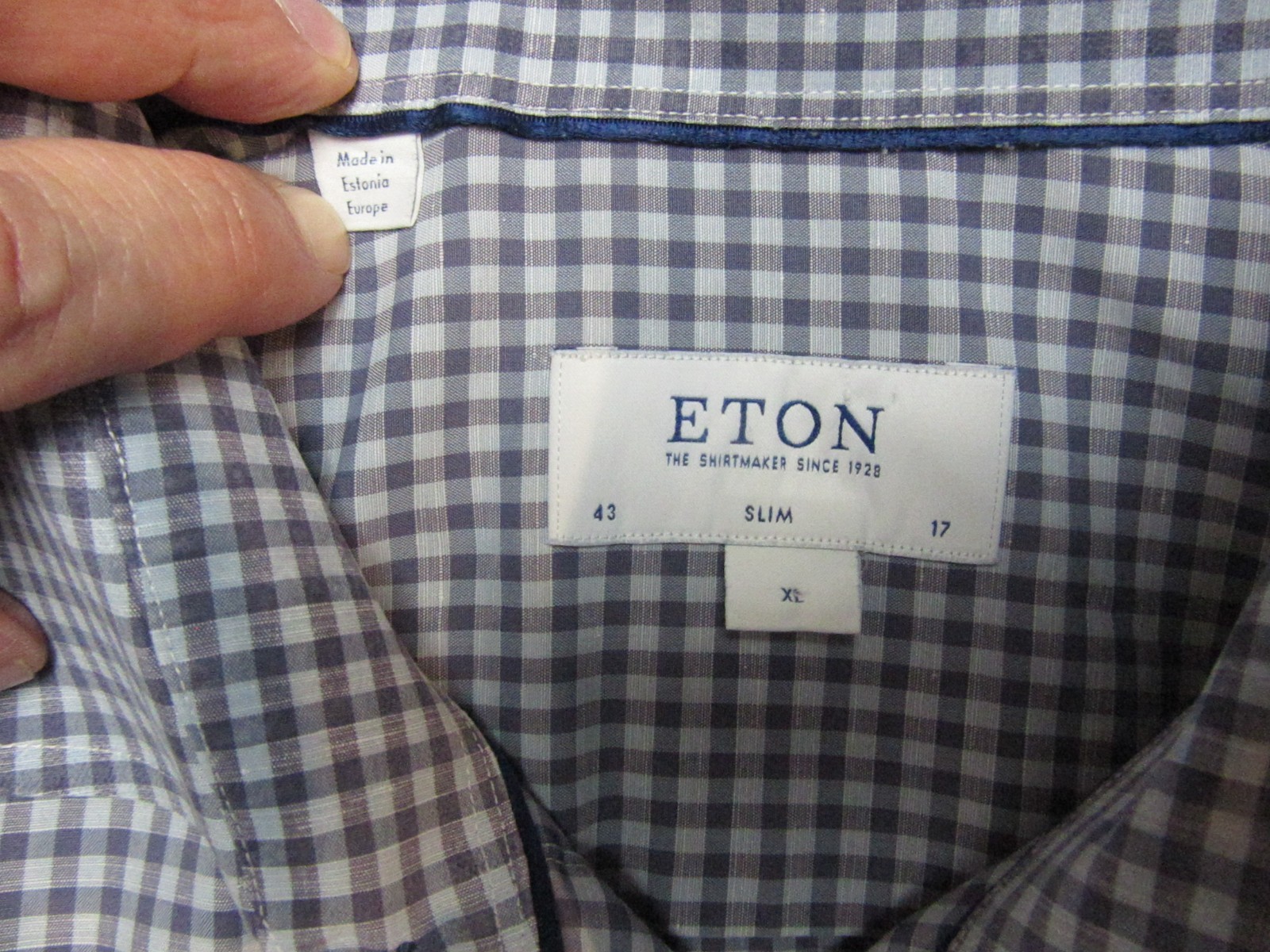 Eton Dress Shirt Mens XL Blue Gingham Check 43 17 Slim Oxford Business Office