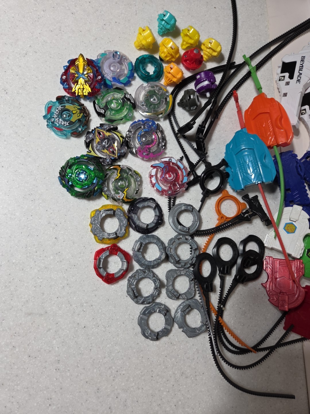 Beyblade Huge Lot Launchers, Weights, Tips, Tops, Ripcords