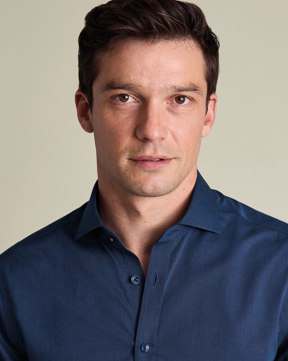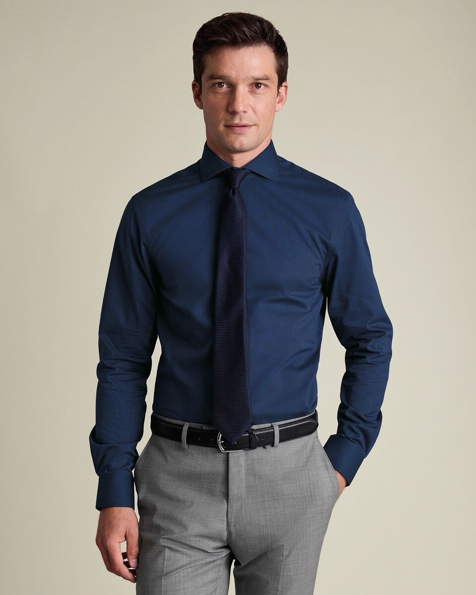 как выглядит Charles Tyrwhitt Non-Iron Stretch Poplin Shirt Classic Fit Royal Blue 17 1/2/34 фото