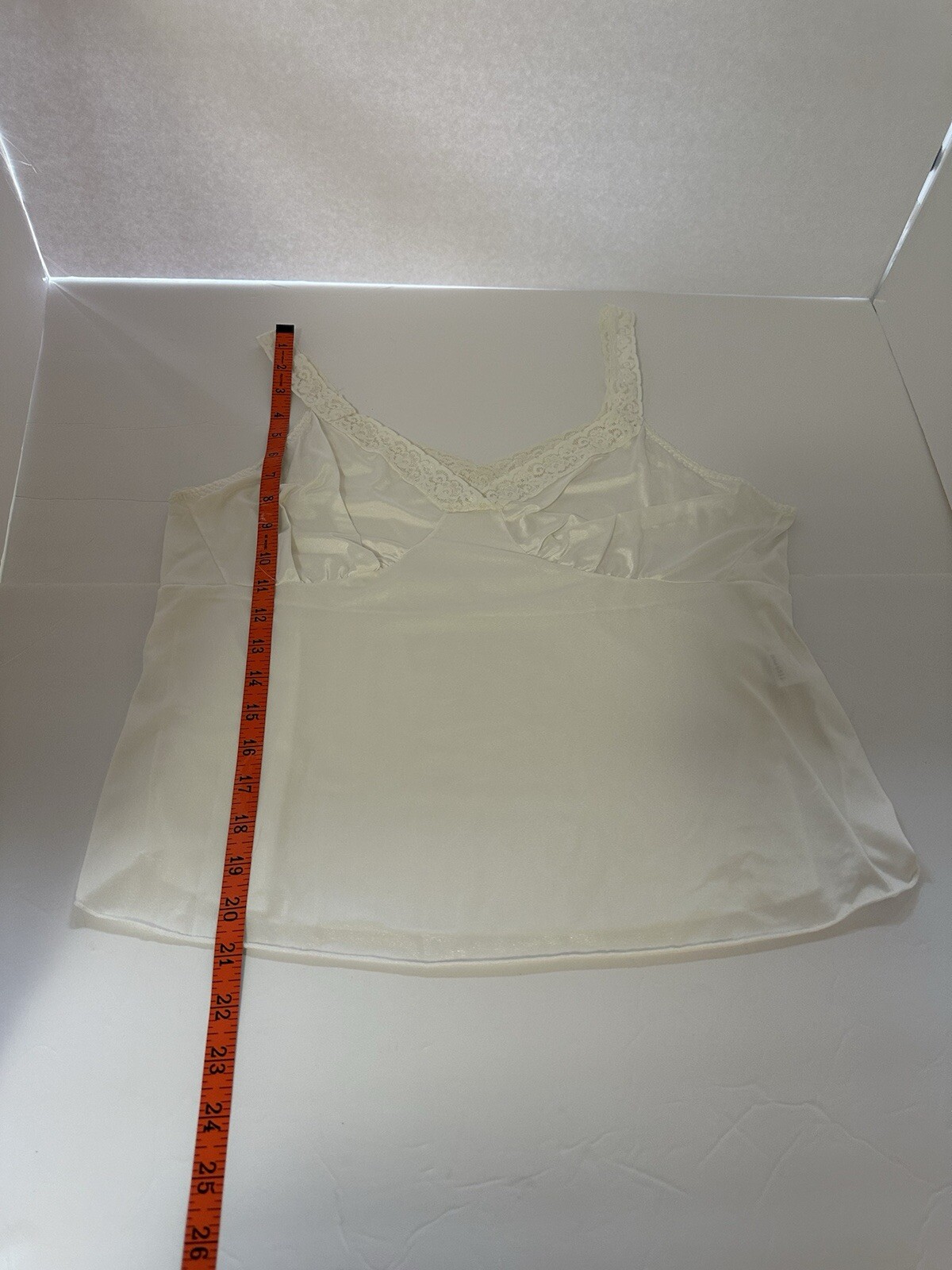 VTG Dixie Belle Lace Trim Nylon White V-Neck Camisole Slip Tank Sz 40
