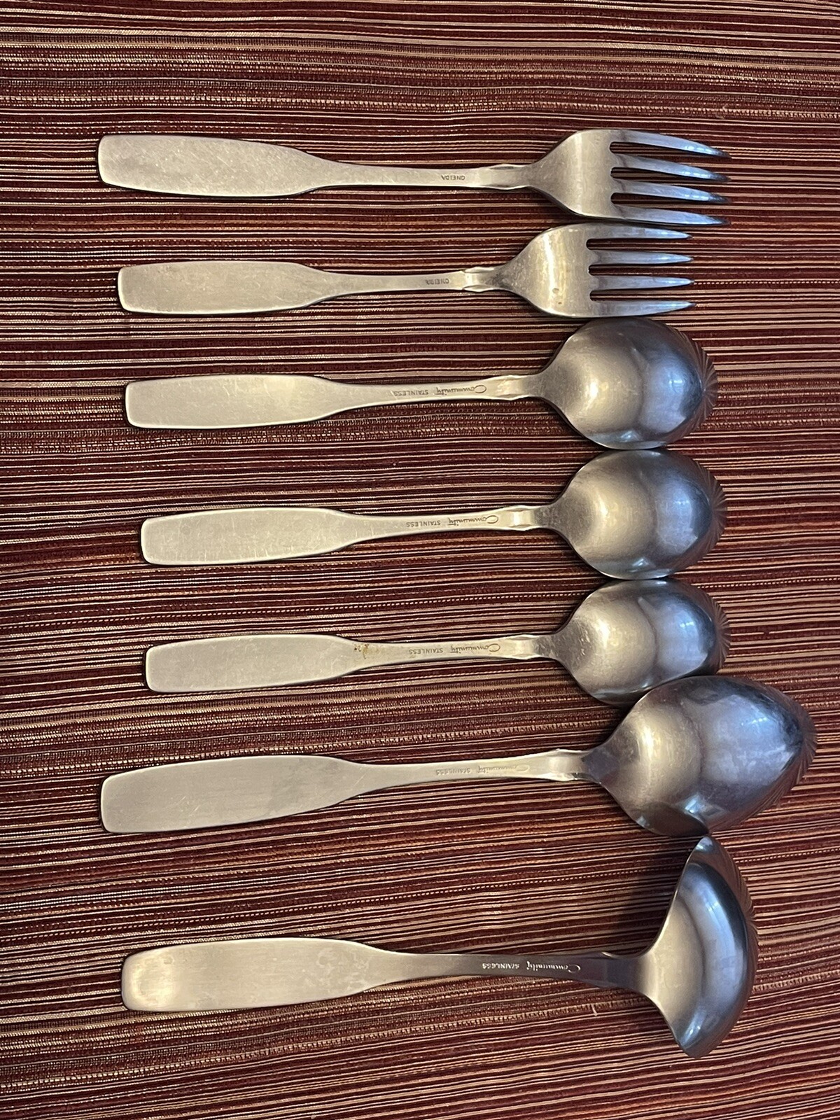 как выглядит Oneida Community Paul Revere Lot Of 7 Stainless Flatware Serving Spoon Forks фото