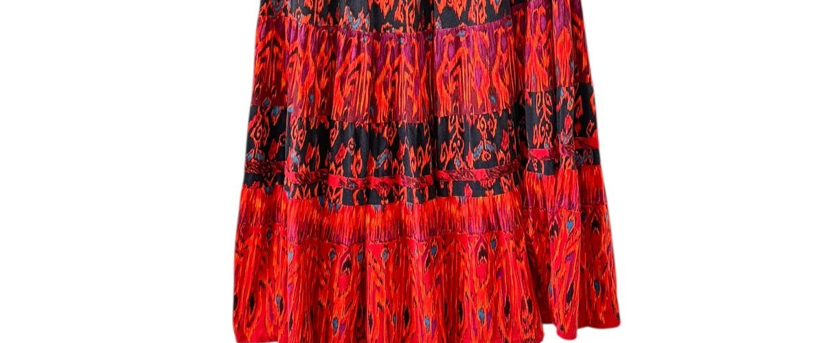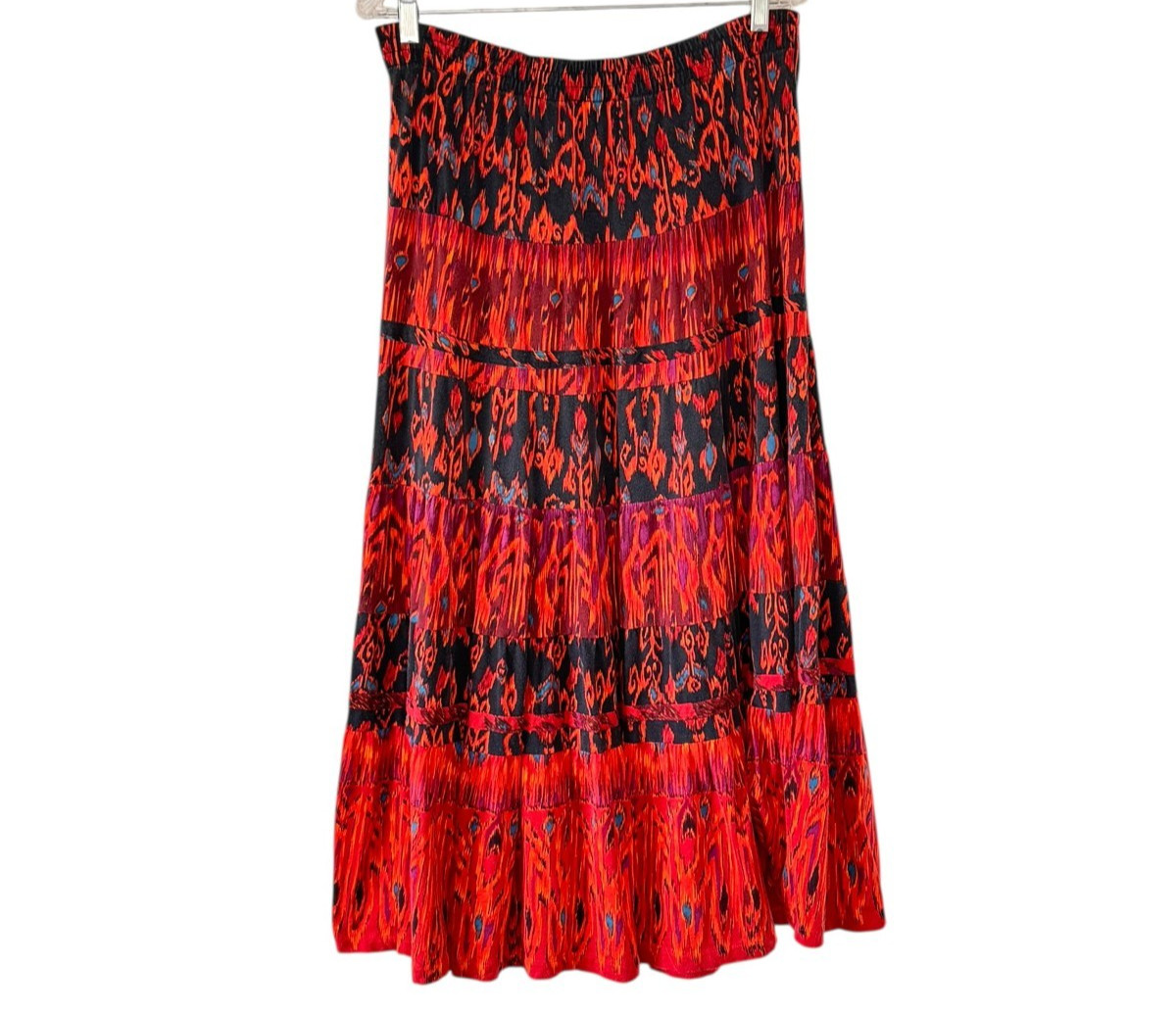Vintage Carole Little Tiered Maxi Skirt Blue Orange Purple Black Burgundy Size L