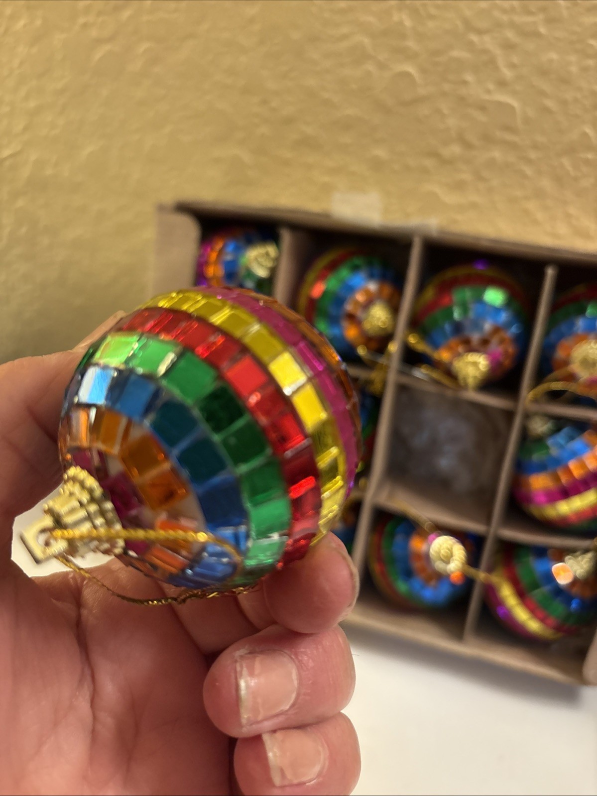 как выглядит 12 Mini Rainbow Disco Ball Christmas Ornaments 70s Retro Style Reflective o2 фото