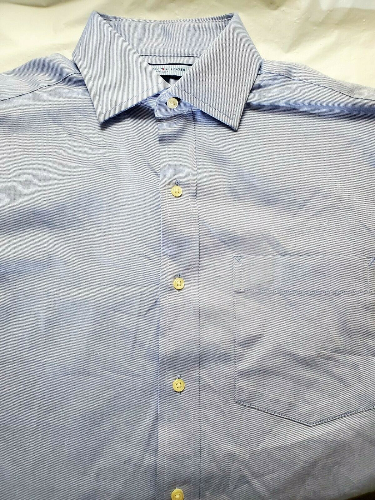 как выглядит Tommy Hilfiger Mens Size M 15 32-33 Long-Sleeve Dress Shirt Blue фото