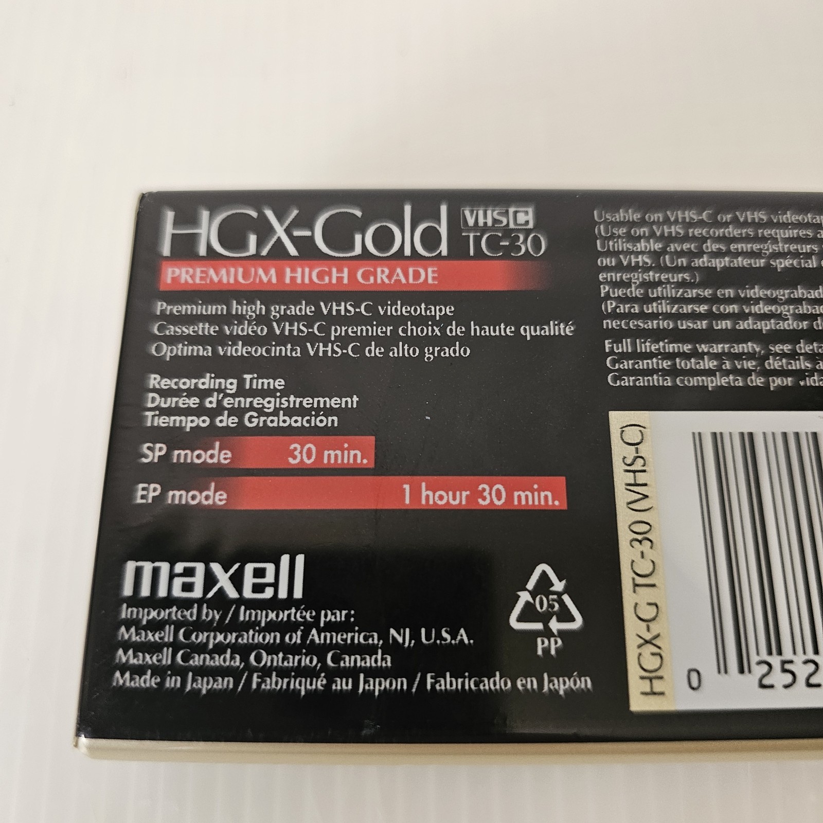 Maxell Camcorder Video Cassette Tape HGX-Gold TC-30 VHS-C Premium Grade, NEW