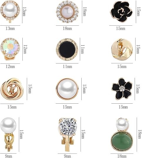 12 Pairs Clip on Earrings for Women Cute Earring Crystal Pearl Stud Charming Fas