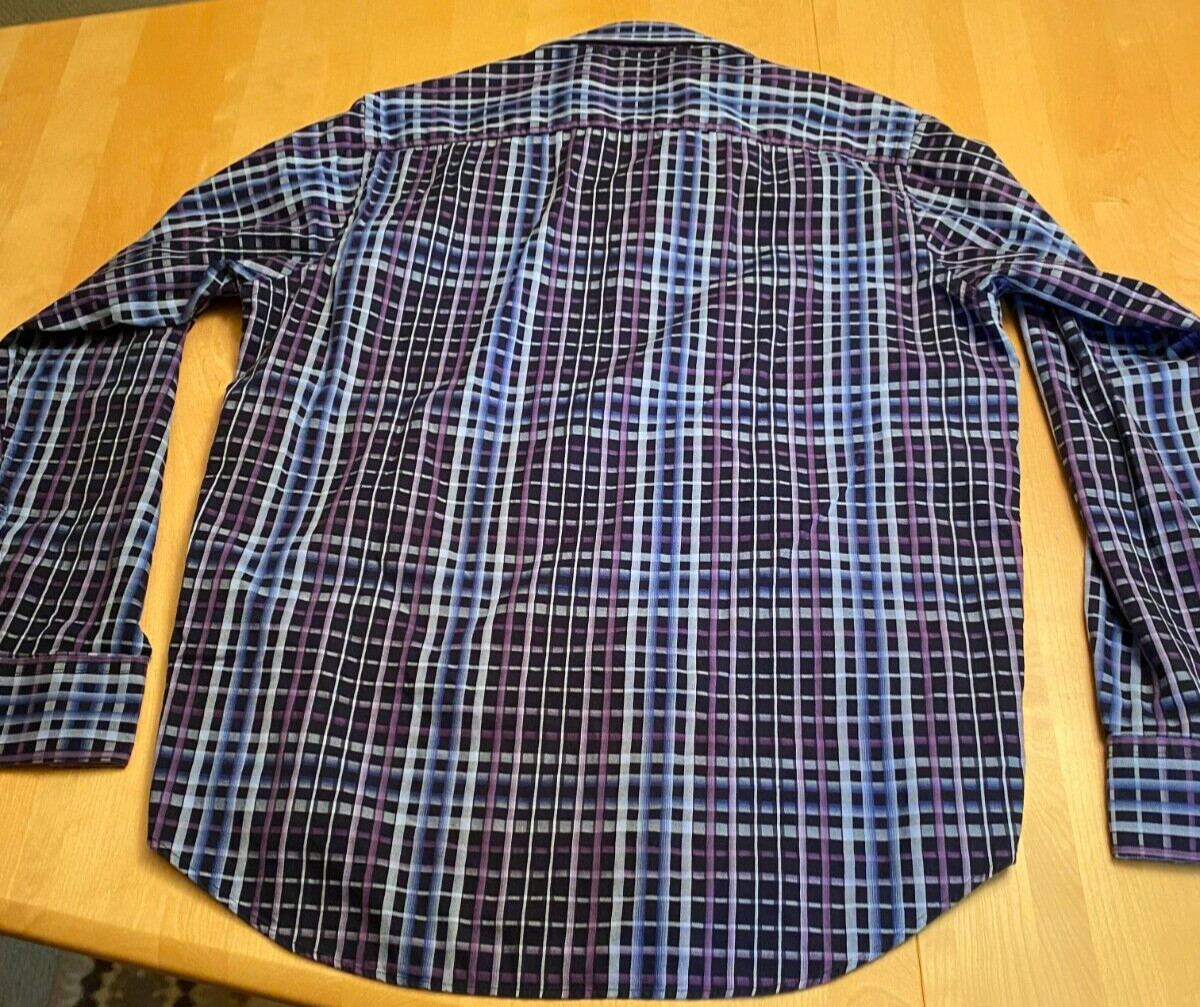 Bugatchi Uomo Classic Fit Long Sleeve Purple Plaid Shirt Size M