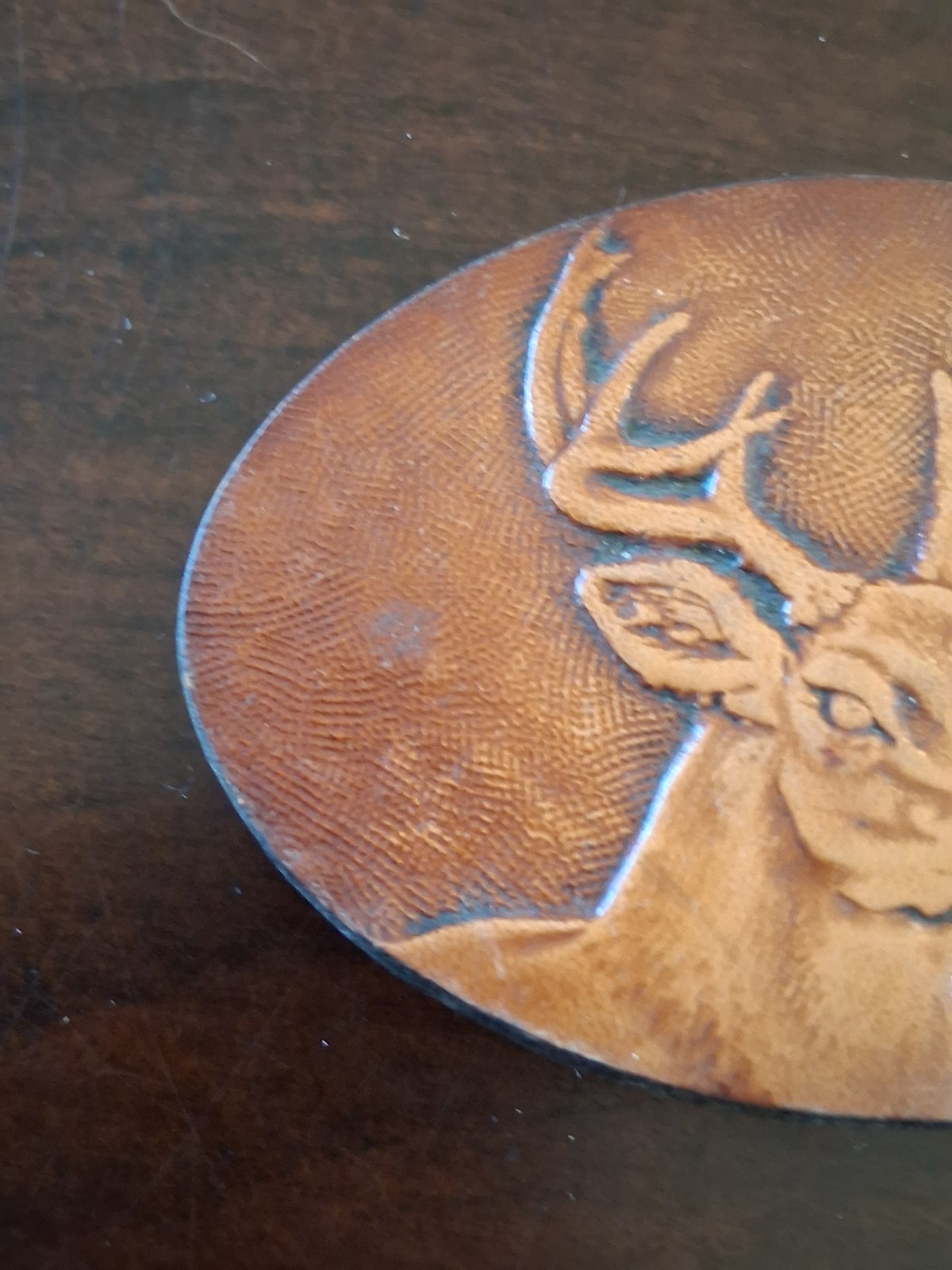 как выглядит VINTAGE 1993 LEATHER BELT BUCKLE WITH A BUCK DEER. SIGNED фото