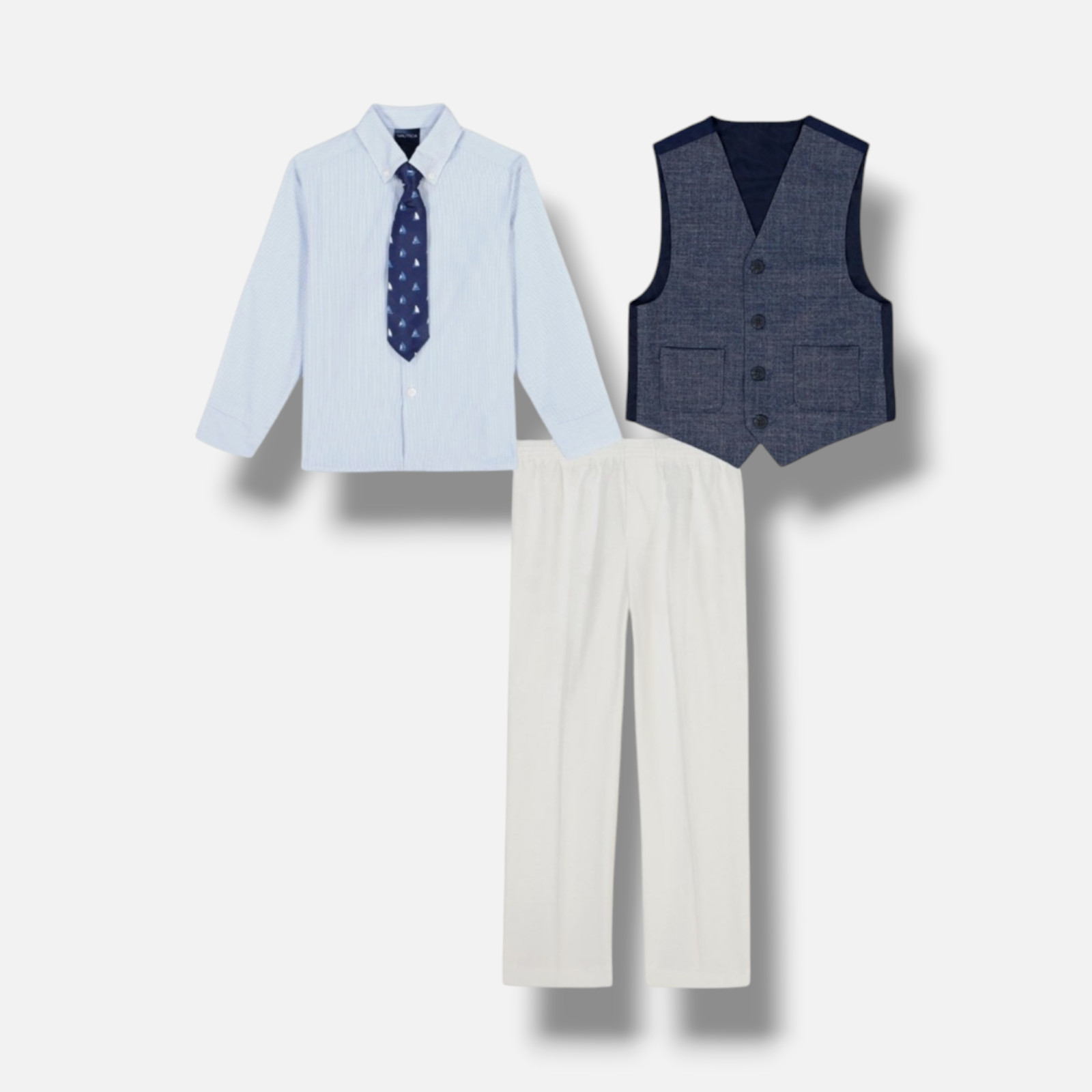 Nautica Kids Boy's Blue 4-Piece Textured Printed Vest Set Sz 4