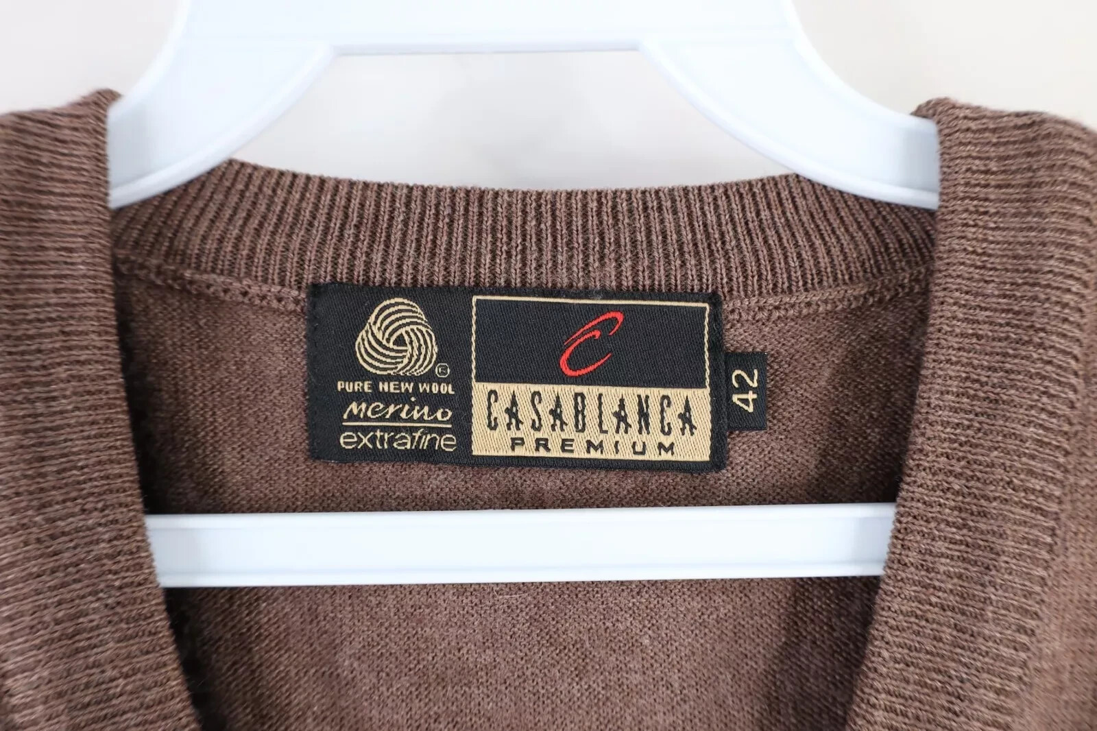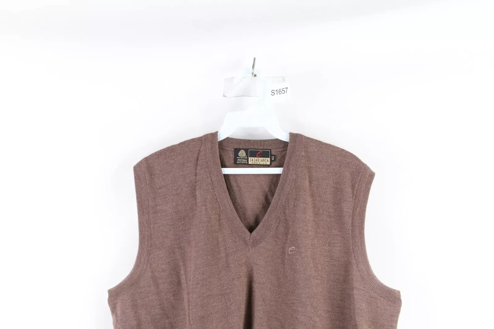 Vtg 90s Streetwear Mens 42 Distressed Blank Merino Wool Knit Sweater Vest Brown
